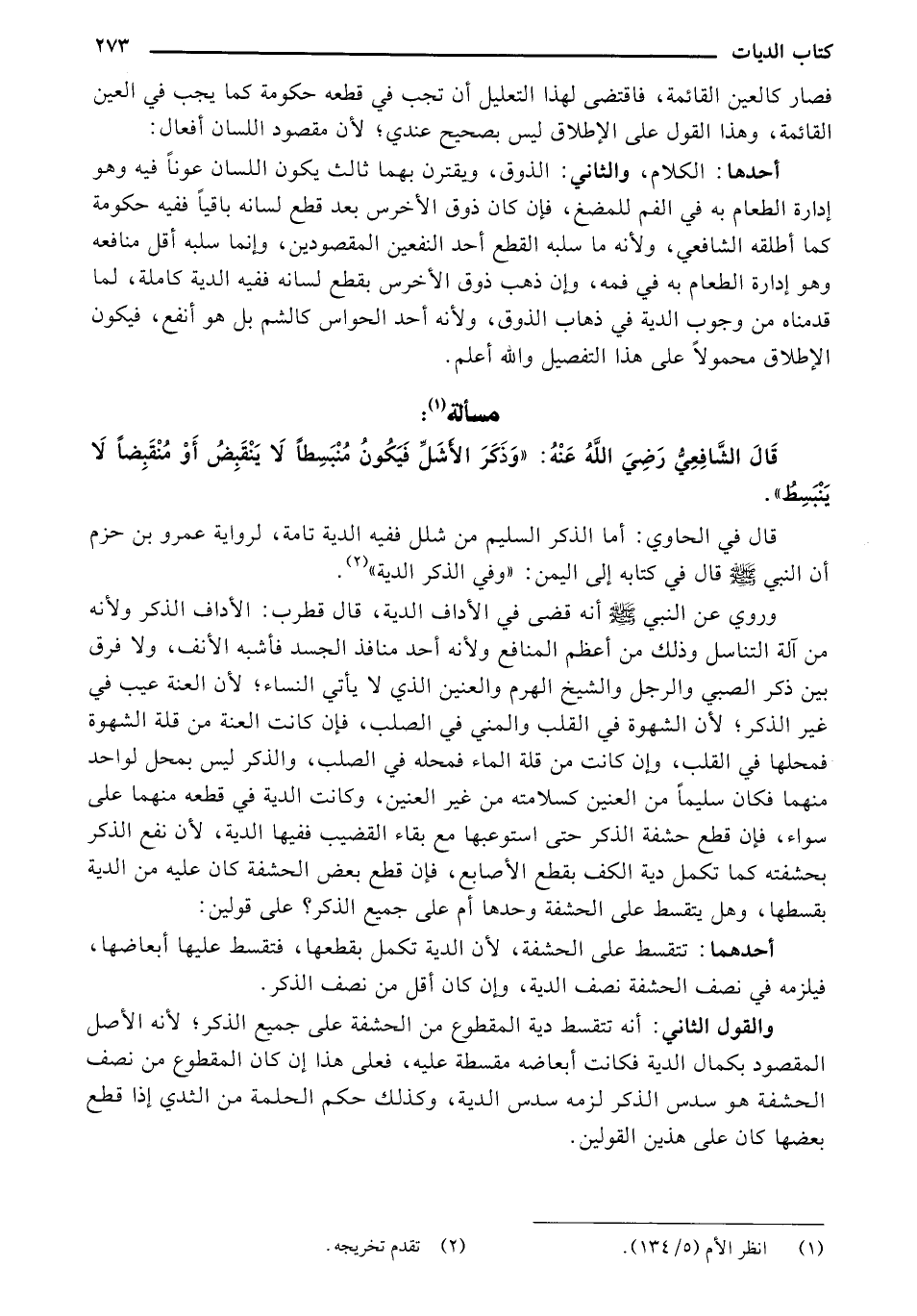 قال في الحاوي: أما الذكر السليم من شلل ففيه الدية تامة, لرواية عمرو بن حزم أن النبي صلى الله عليه وسلم قال في كتابه إلى اليمن: "وفي الذكر الدية".