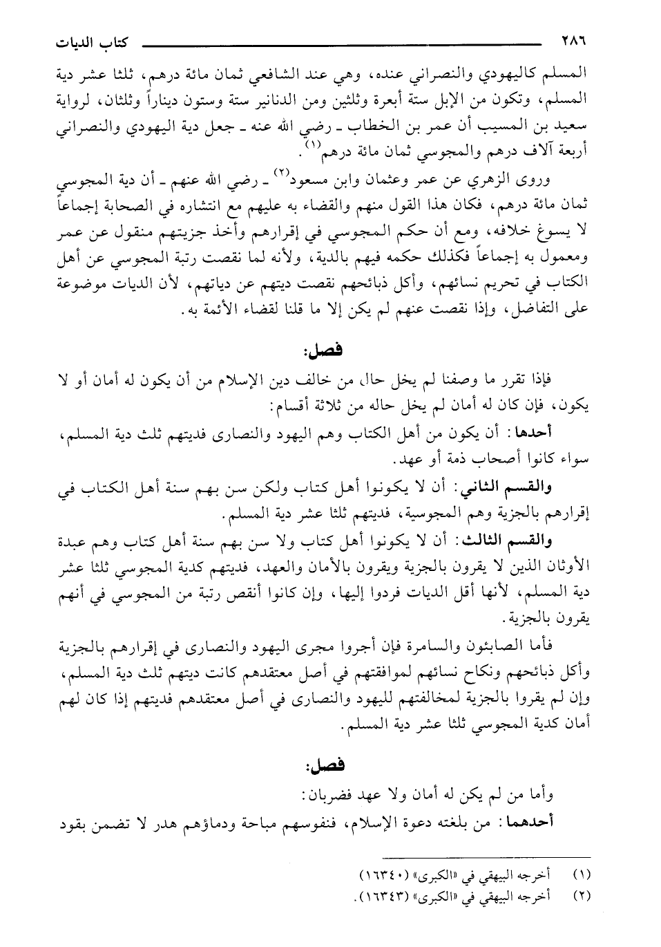 والقسم الثاني: أن لا يكونوا أهل كتاب ولكن سن بهم سنة أهل الكتاب في إقرارهم بالجزية وهم المجوسية, فديتهم ثلثا عشر دية المسلم.