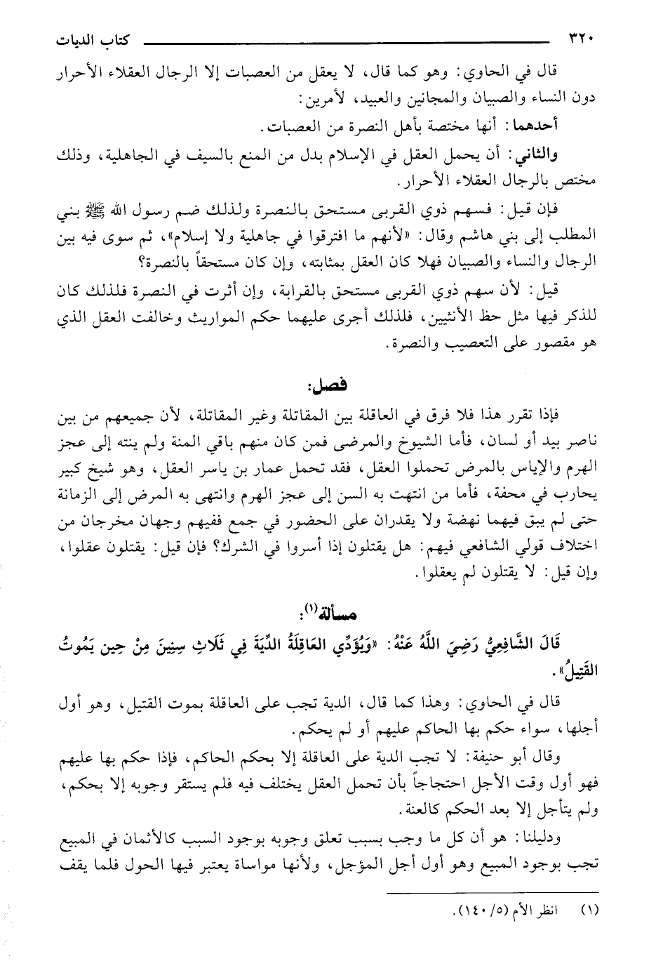 قال الشافعي رضي الله عنه: "ويؤدي العاقلة الدية في ثلاث سنين من حيث يموت القتيل".