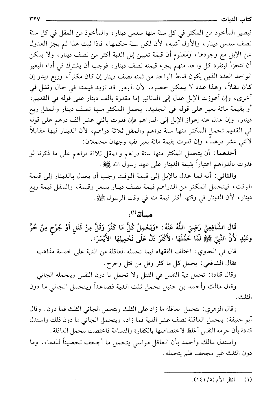 قال في الحاوي: اختلف الفقهاء فيما تحمله العاقلة من الدية على خمسة مذاهب:
