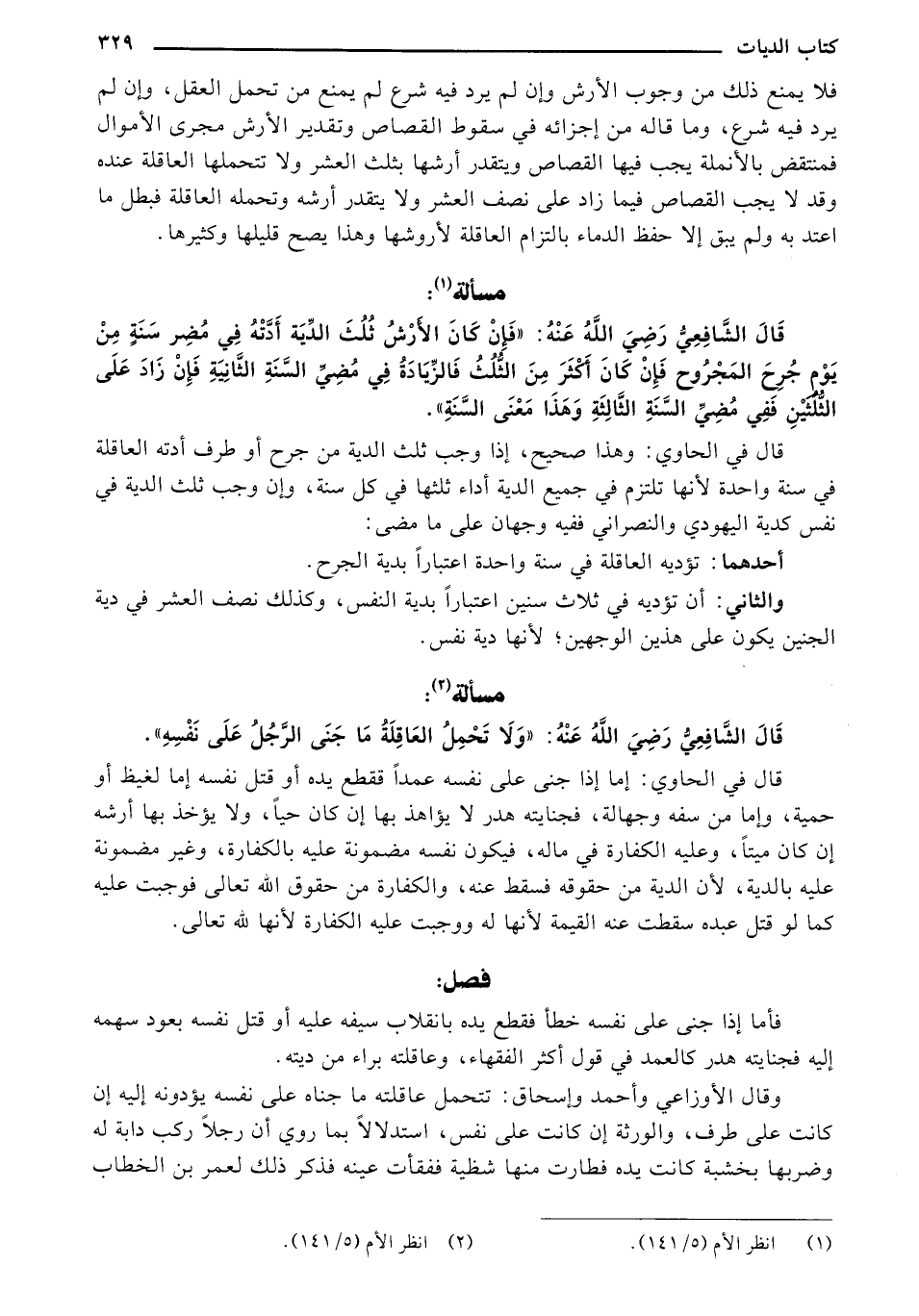 قال الشافعي رضي الله عنه: "ولا تحمل العاقلة ما جني الرجل على نفسه".