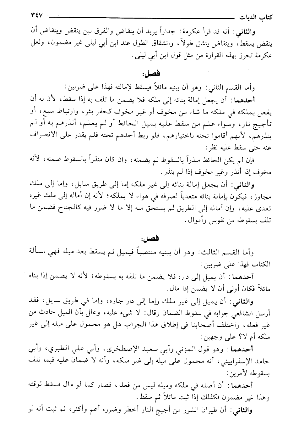 والثاني: أن يجعل إمالة بنائه إلى غير ملكه إما إلى طريق سابل، وإما إلى ملك مجاوز، فيكون بإمالة بنائه متعديًا لصرفه في هواء لا يملكه؛ لأنه إن أماله إلى ملك غيره تعدى عليه، وإن أماله إلى الطريق لم يستحق منه إلا ما لا ضرر فيه كالجناح فضمن ما تلف بسقوطه من نفوس وأموال.
