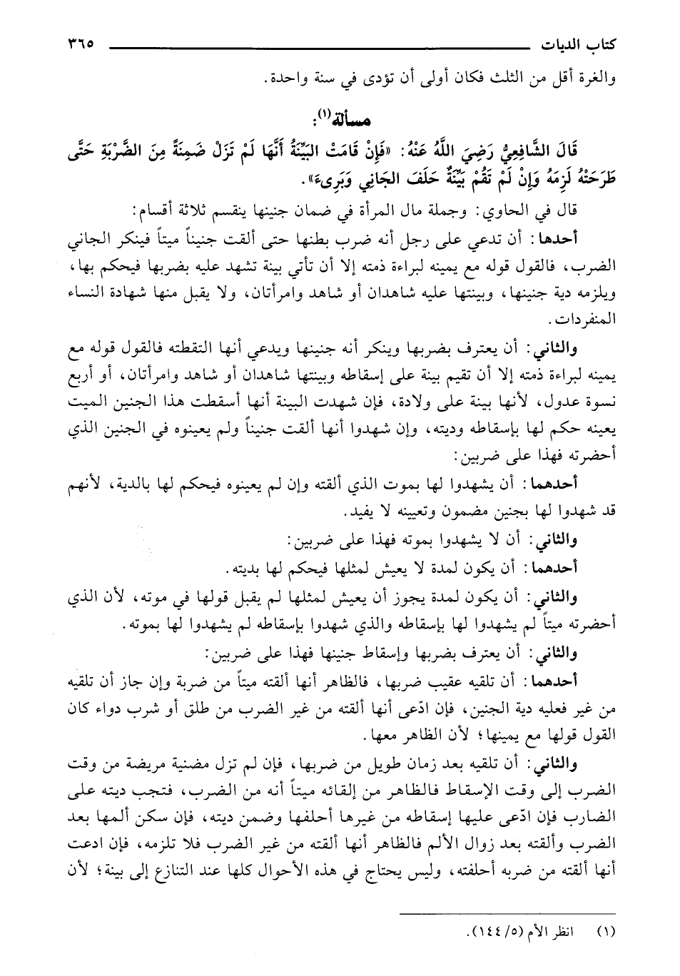 قال في الحاوي: وجملة مال المرأة في ضمان جنينها ينقسم ثلاثة أقسام: