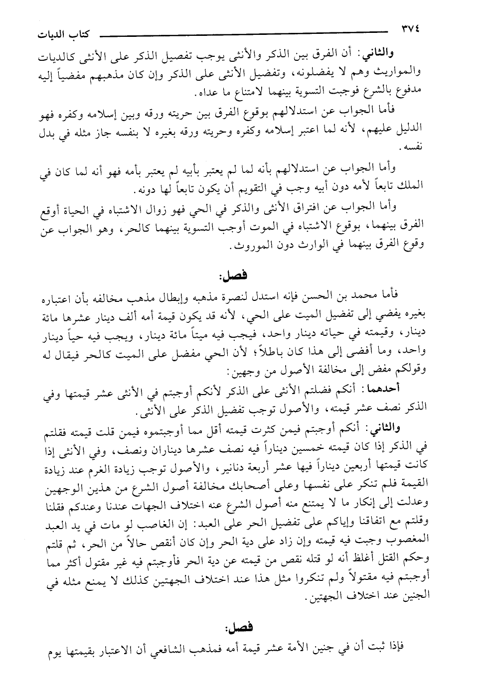 وأما الجواب عن افتراق الأنثى والذكر في الحي فهو زوال الاشتباه في الحياة أوقع الفرق بينهما، بوقوع الاشتباه في الموت أوجب التسوية بينهما كالحر، وهو الجواب عن وقوع الفرق بينهما في الوارث دون الموروث.