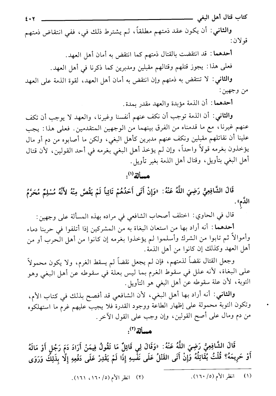 وجعل القتال نقضًا لذمتهم، فإن لم يجعل نقضًا لم يسقط الغرم، ولا يكون محمولاً على البغاة، لأنه علل في سقوط الغرم يما ليس بعلة في سقوطه عن أهل البغي وهو التوبة، لان علة سقوطه عن أهل البغي هو التأويل.