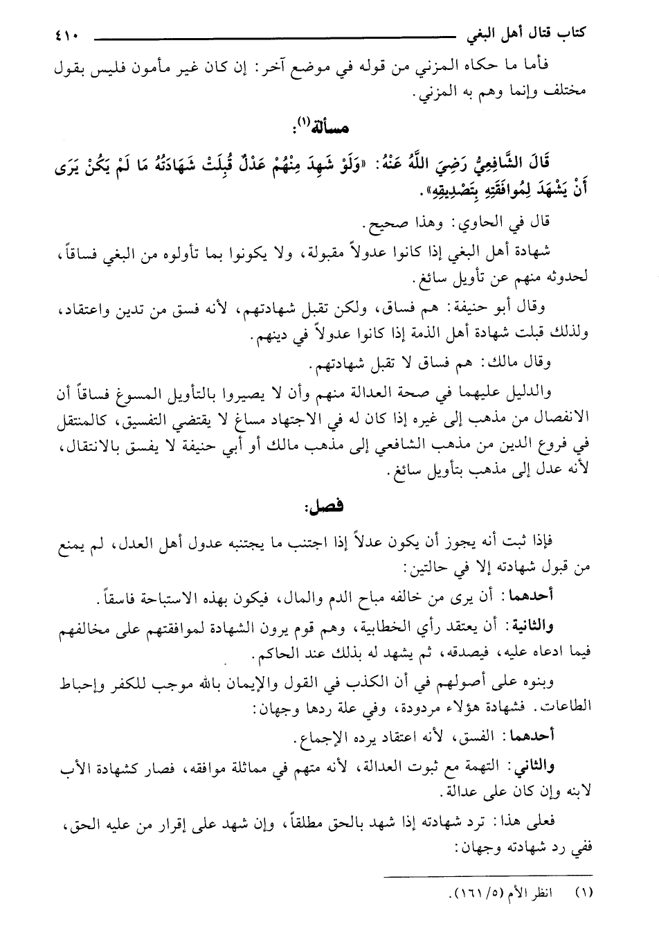 شهادة أهل البغي إذا كانوا عدولاً مقبولة، ولا يكونوا بما تأولوه من البغي فساقاً، لحدوثه منهم عن تأويل سائغ.