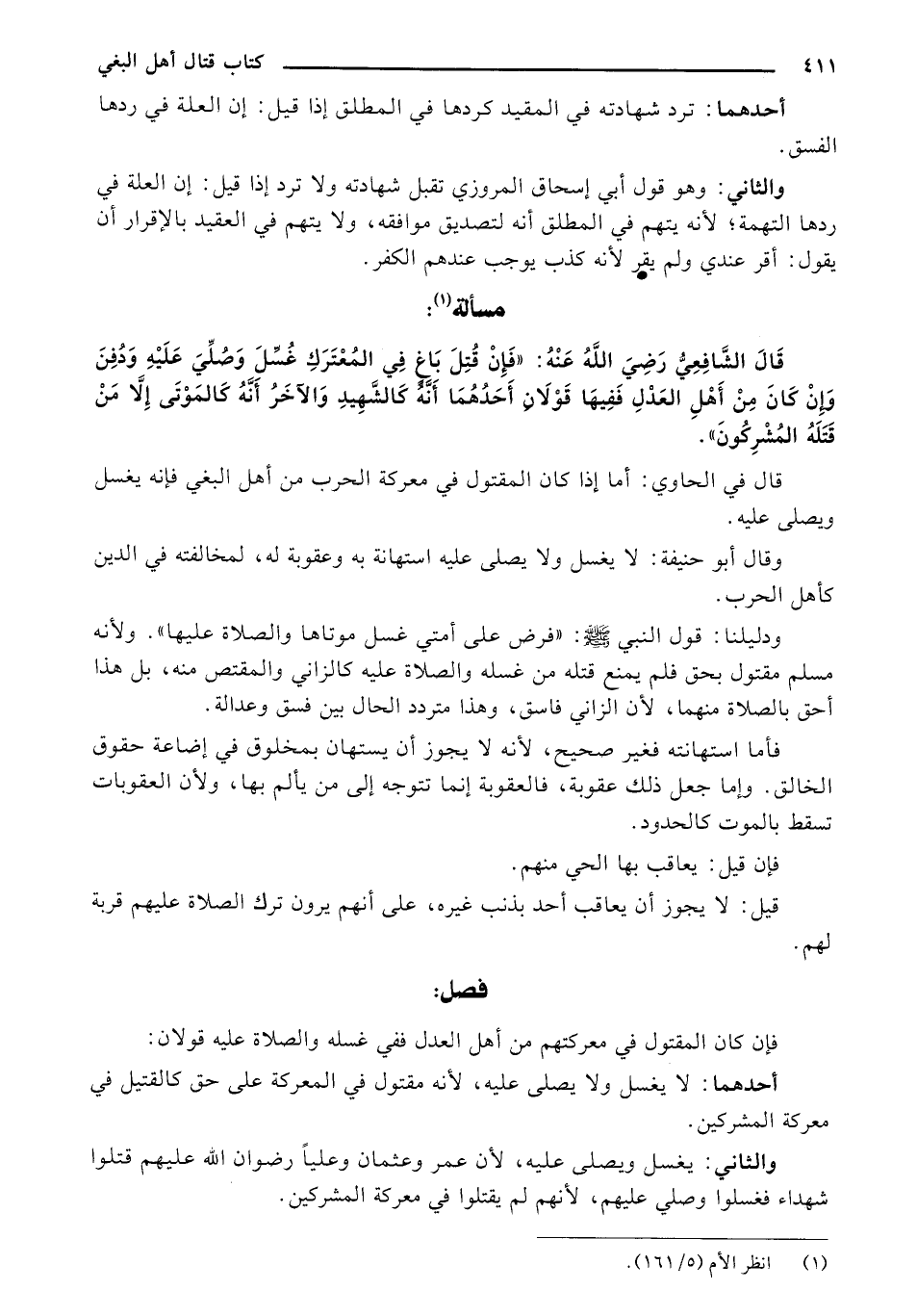 قال الشافعي رضي الله عنه: "فإن قتل باغ في المعترك غسل وصلى عليه ودفن وإن كان من أهل العدل ففيها قولان أحدهما أنه كالشهيد والآخر أنه كالموتى إلا من قتله المشركون".