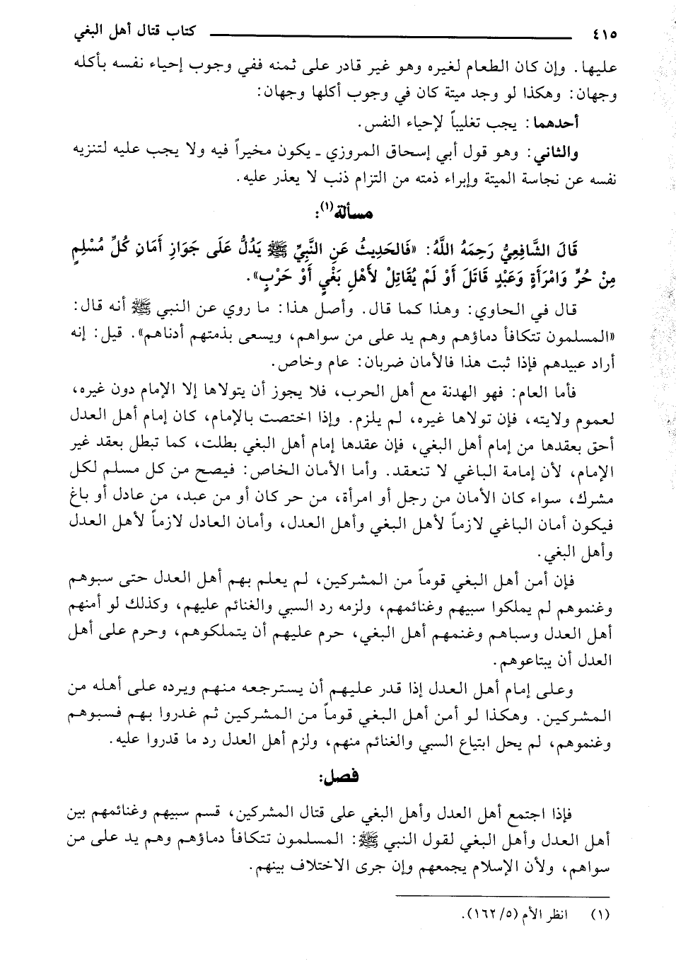 قال الشافعي رحمه الله: "فالحديث عن النبي صلى الله عليه وسلم يدل على جواز أمان كل مسلم من حر وامرأة وعبد قاتل أو لما يقاتل لأهل بغي أو حرب".