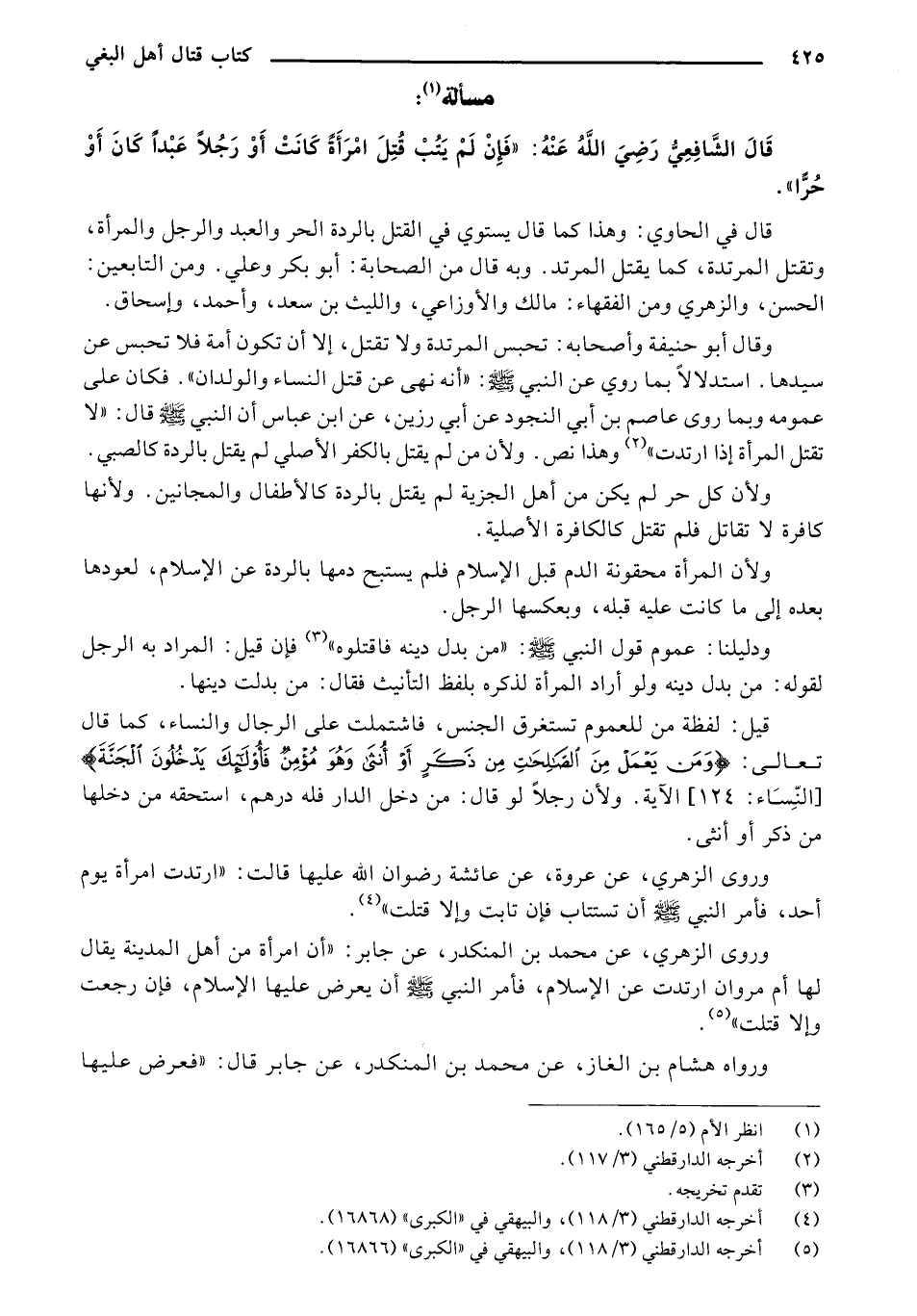قال الشافعي رضي الله عنه: "فإن لم يتب قتل امرأة كانت أو رجلًا عبدًا كان أو حرًا".