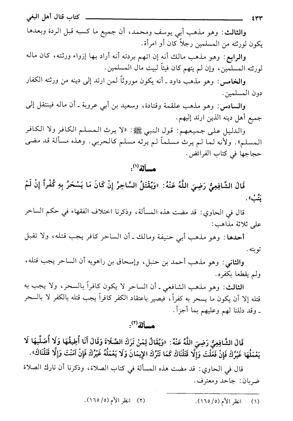 قال في الحاوي: قد مضت هذه المسألة, وذكرنا اختلاف الفقهاء في حكم الساحر على ثلاثة مذاهب: