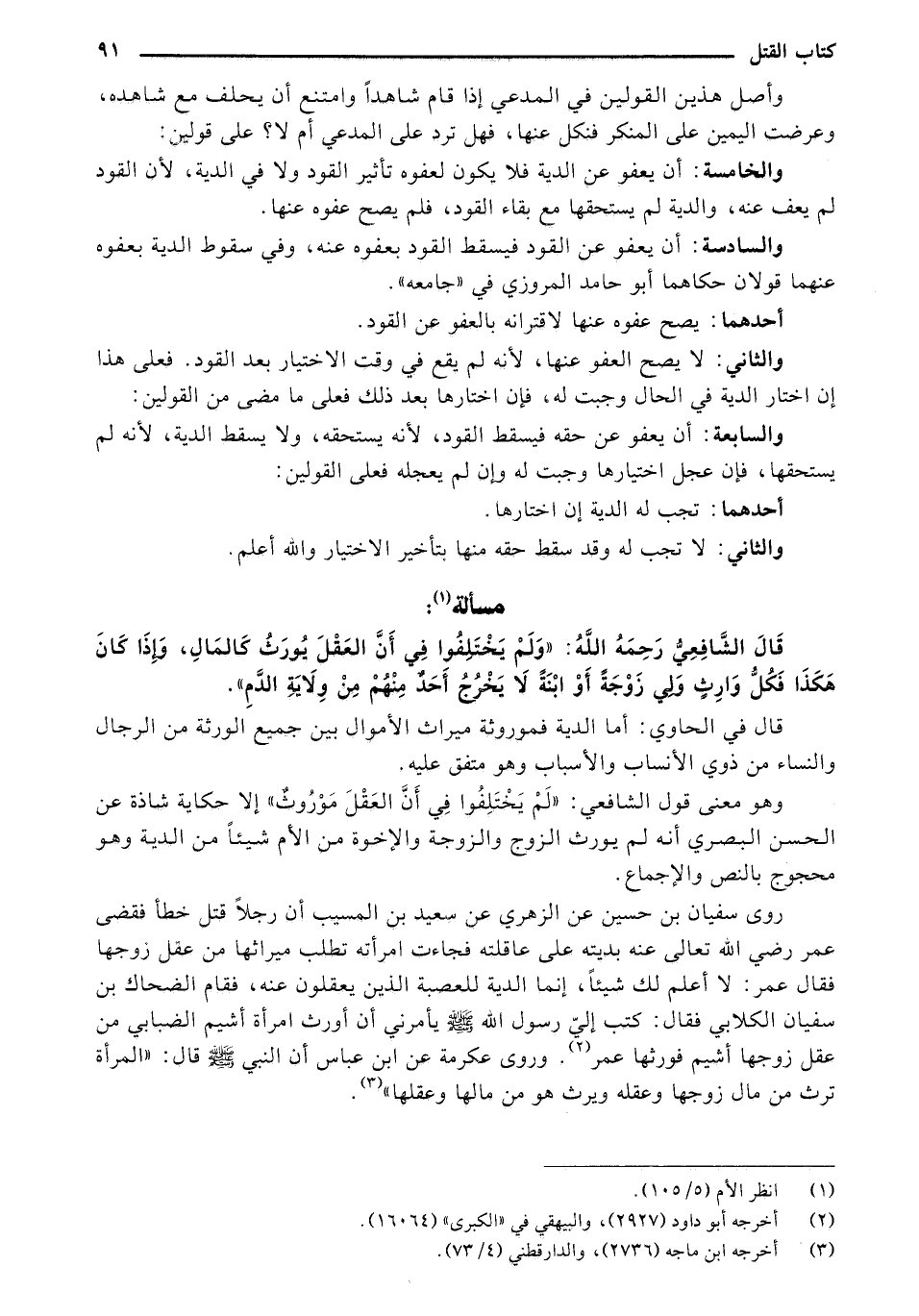 قال الشافعي رحمه الله: "ولم يختلفوا في أن العقل يورث كالمال، وإذا كان هكذا فكل وارثٍ ولي زوجةً أو ابنةً لا يًخرج أحدٌ منهم من ولاية الدم".