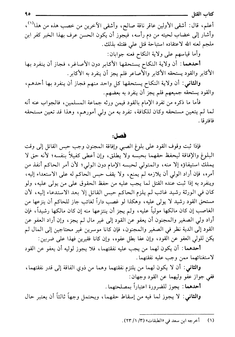والثاني: أن لا يكون لهما من يلتزم نفقتهما وهما من ذوي الفاقة إلى قدر نفقتهما، ففي جواز عفو وليهما عن القود وجهان: