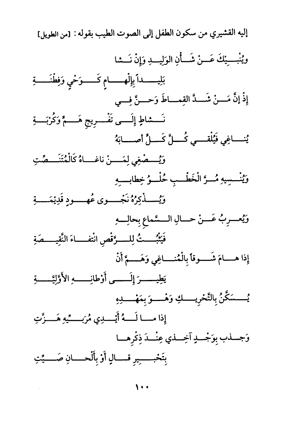 إليه القشيري من سكون الطفل إلى الصوت الطيب بقوله: [من الطويل]
