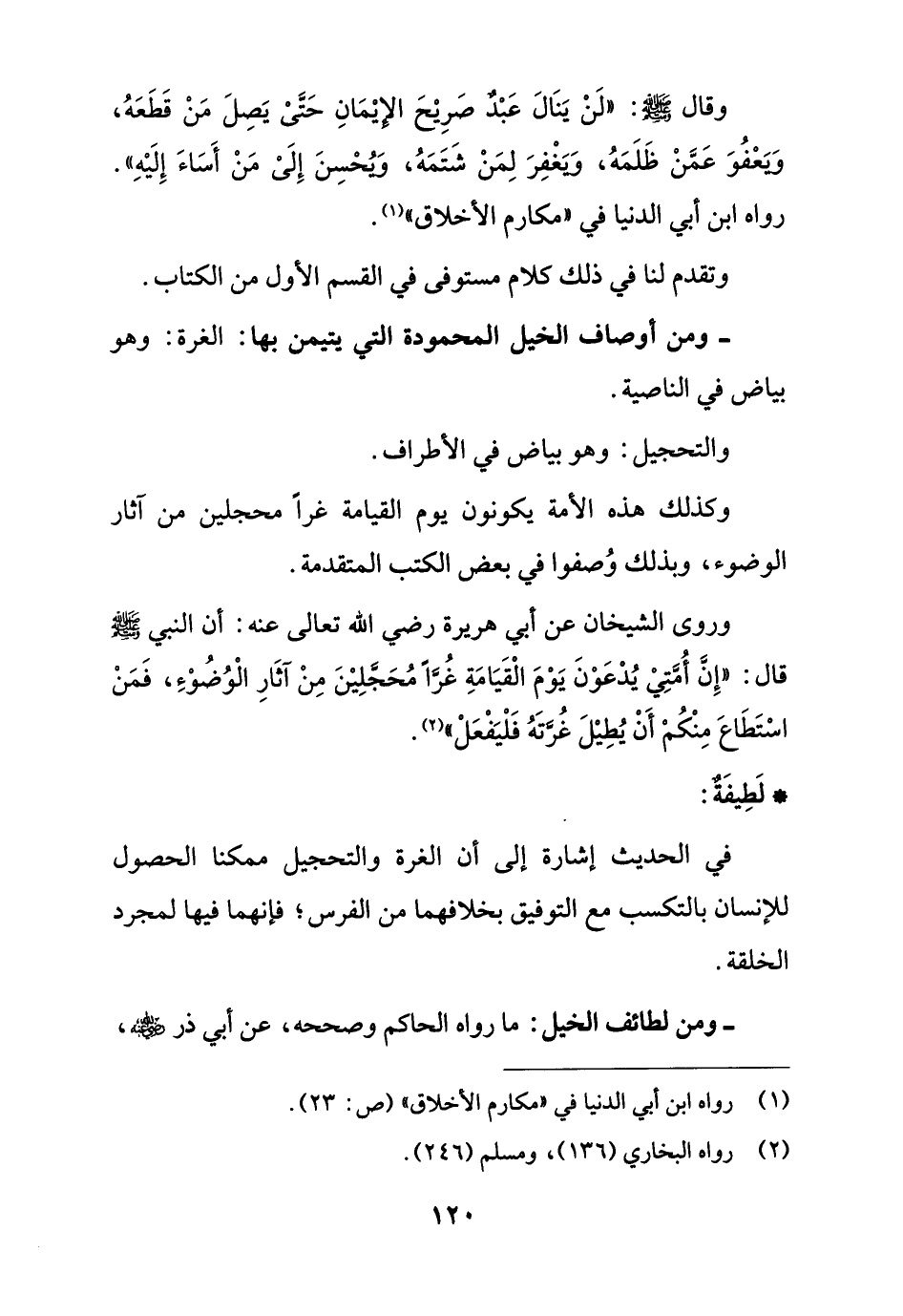 - ومن لطائف الخيل: ما رواه الحاكم وصححه، عن أبي ذر - رضي الله عنه -،