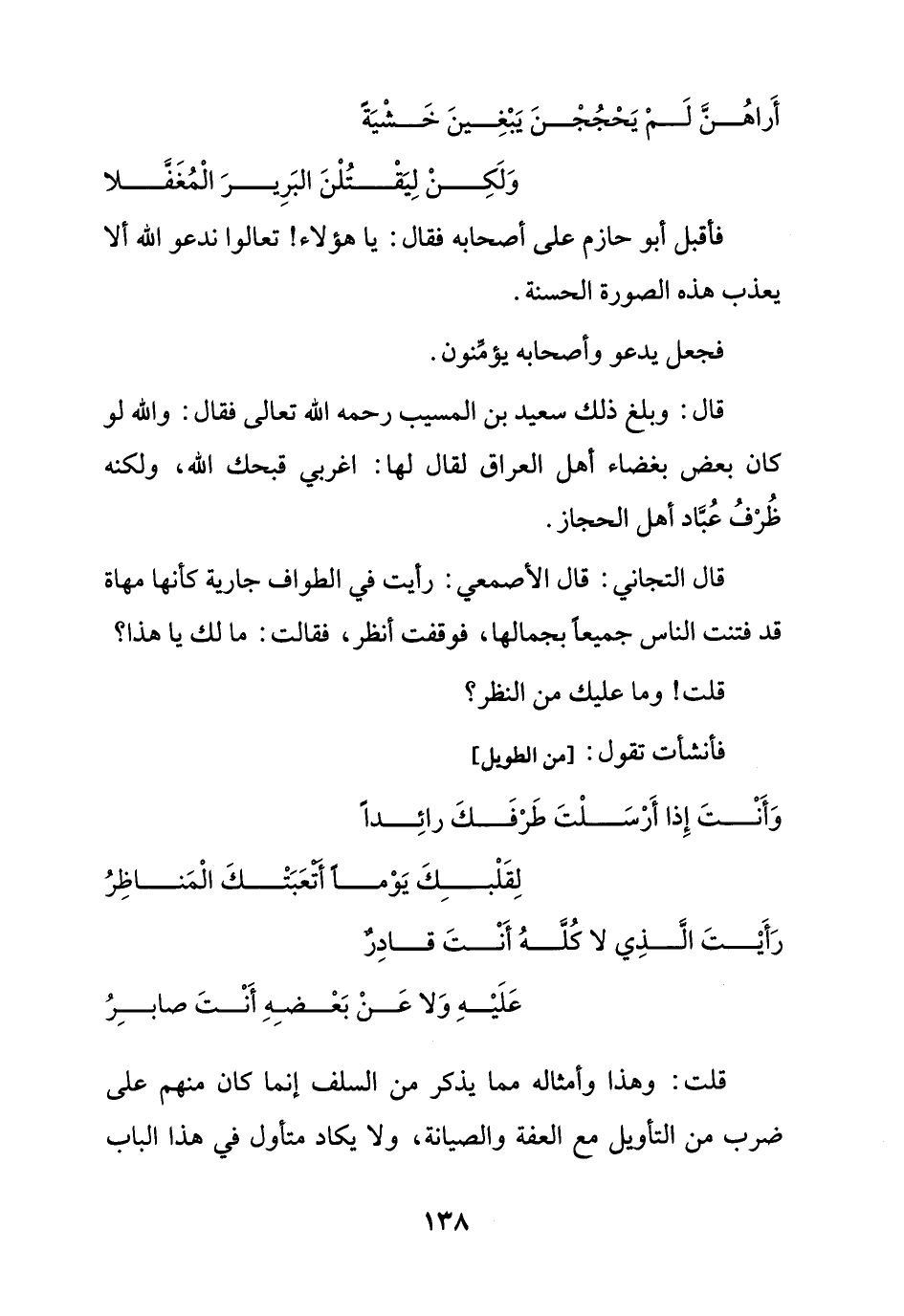 قلت: وهذا وأمثاله مما يذكر من السلف إنما كان منهم على ضرب من التأويل مع العفة والصيانة، ولا يكاد متأول في هذا الباب