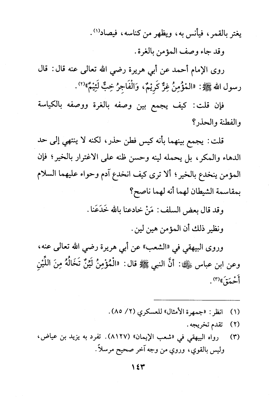 روى الإمام أحمد عن أبي هريرة رضي الله تعالى عنه قال: قال رسول الله - صلى الله عليه وسلم -: "المْؤُمِنُ غِرٌّ كَرِيْمٌ، وَالْفَاجِرُ خِبٌّ لَئِيْمٌ" (¬2).