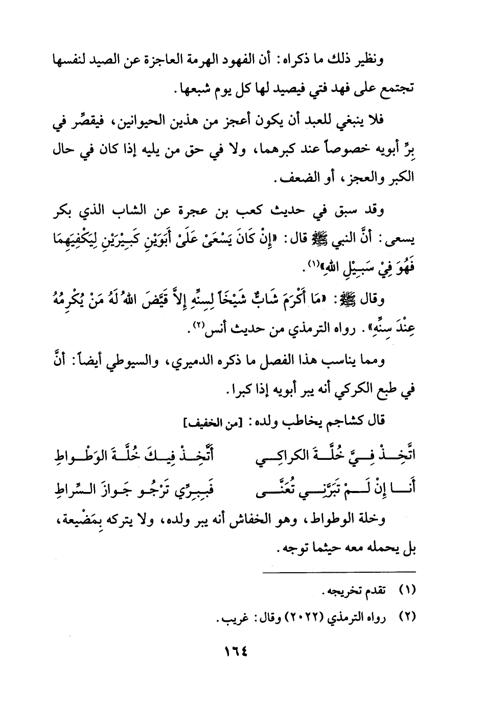 فلا ينبغي للعبد أن يكون أعجز من هذين الحيوانين، فيقصَّر في بِرِّ أبويه خصوصاً عند كبرهما، ولا في حق من يليه إذا كان في حال الكبر والعجز، أو الضعف.