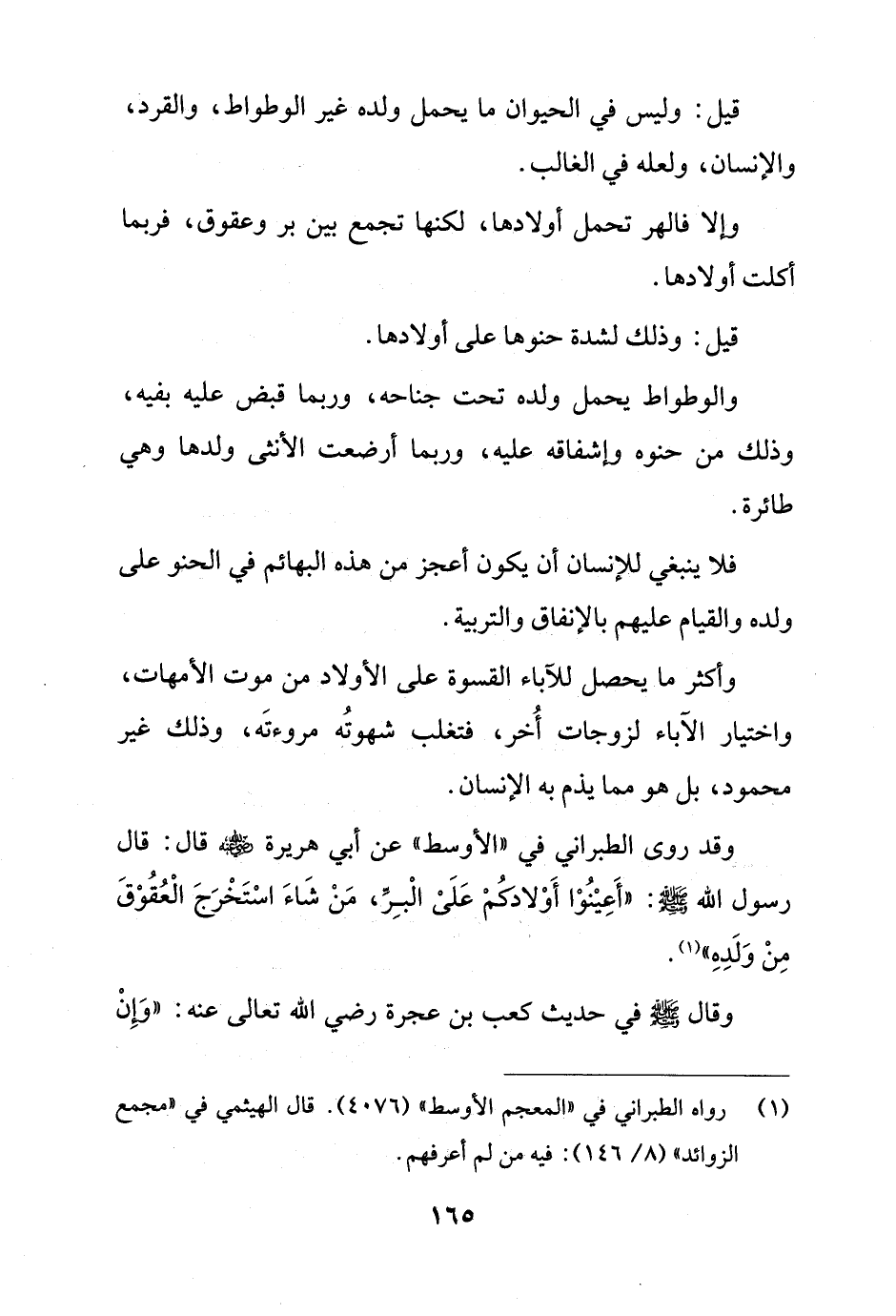 وقد روى الطبراني في "الأوسط" عن أبي هريرة - رضي الله عنه - قال: قال رسول الله - صلى الله عليه وسلم -. "أَعِيْنُوْا أَوْلادكمْ عَلَىْ الْبِرِّ، مَنْ شَاءَ اسْتَخْرَجَ الْعُقُوْقَ مِنْ وَلَد" (¬1).