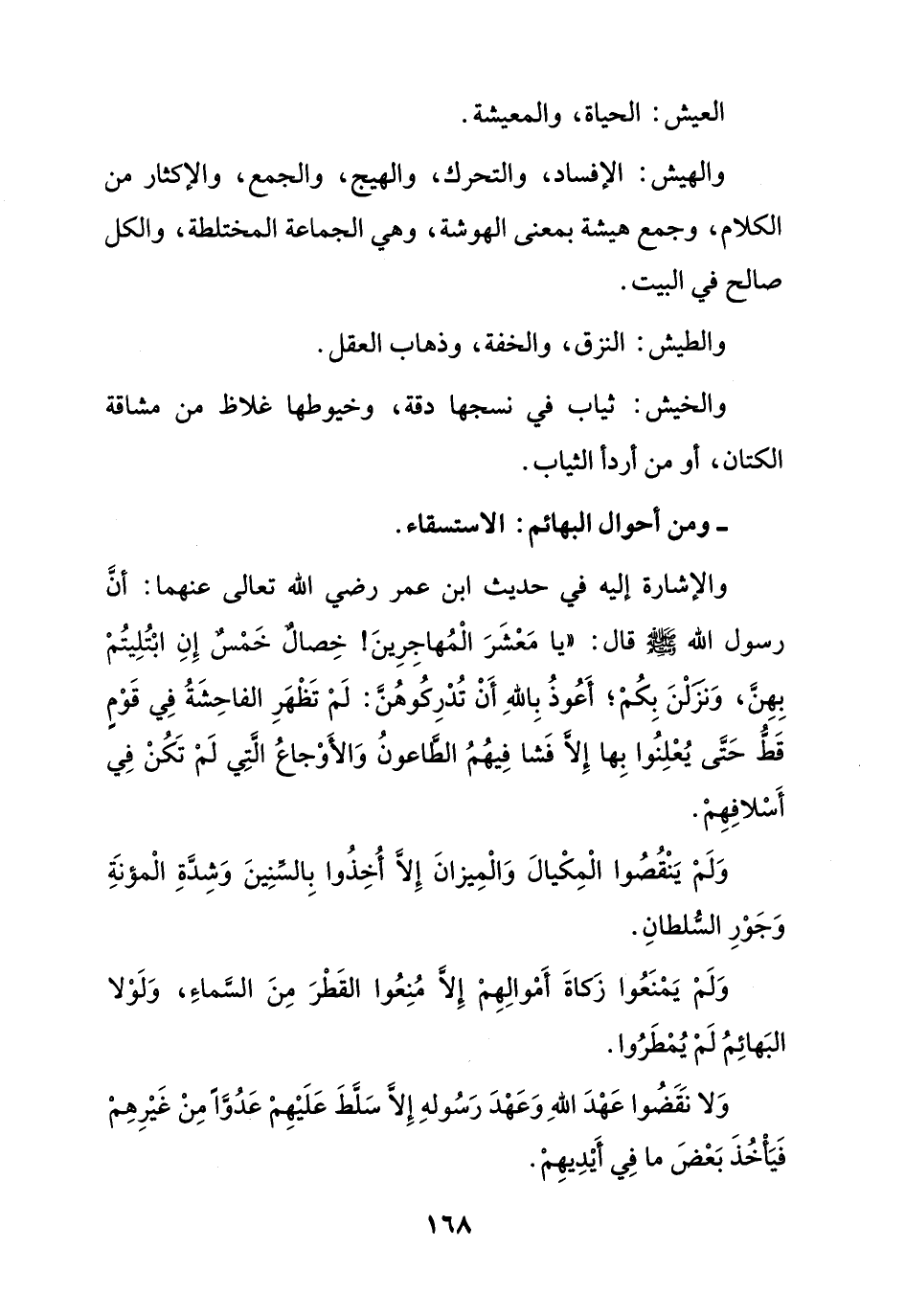 وَلَمْ يَمْنَعُوا زَكاةَ أَمْوالِهِمْ إِلَّا مُنِعُوا القَطْرَ مِنَ السَّماءِ، وَلَوْلا البَهائِمُ لَمْ يُمْطَرُوا.