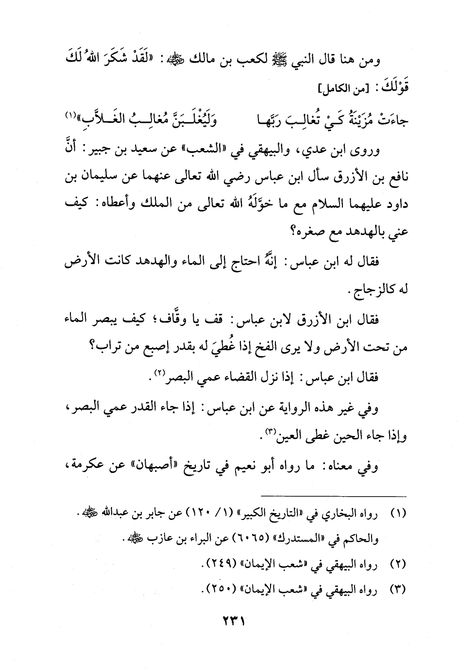 ومن هنا قال النبي - صلى الله عليه وسلم - لكعب بن مالك - رضي الله عنه -: "لَقَدْ شَكَرَ اللهُ لَكَ قَوْلَكَ: [من الكامل]