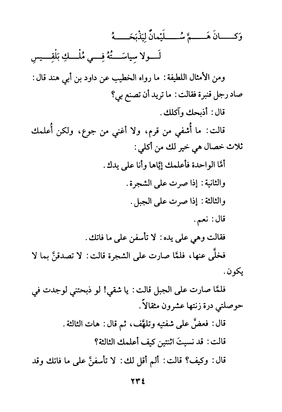 ومن الأمثال اللطيفة: ما رواه الخطيب عن داود بن أبي هند قال: صاد رجل قنبرة فقالت: ما تريد أن تصنع بي؟