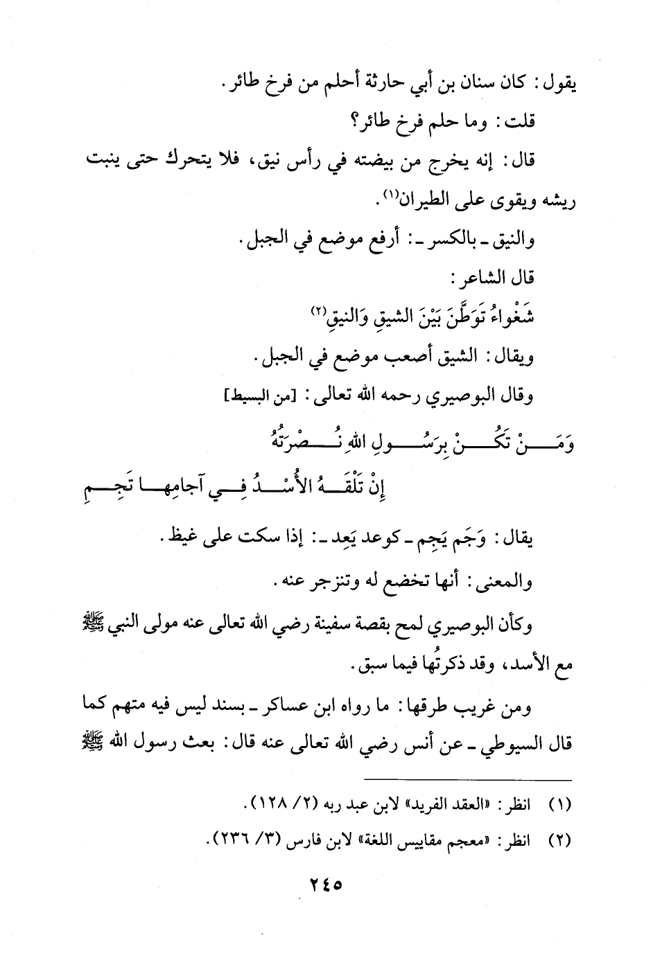 وكأن البوصيري لمح بقصة سفينة رضي الله تعالى عنه مولى النبي - صلى الله عليه وسلم - مع الأسد، وقد ذكرتُها فيما سبق.