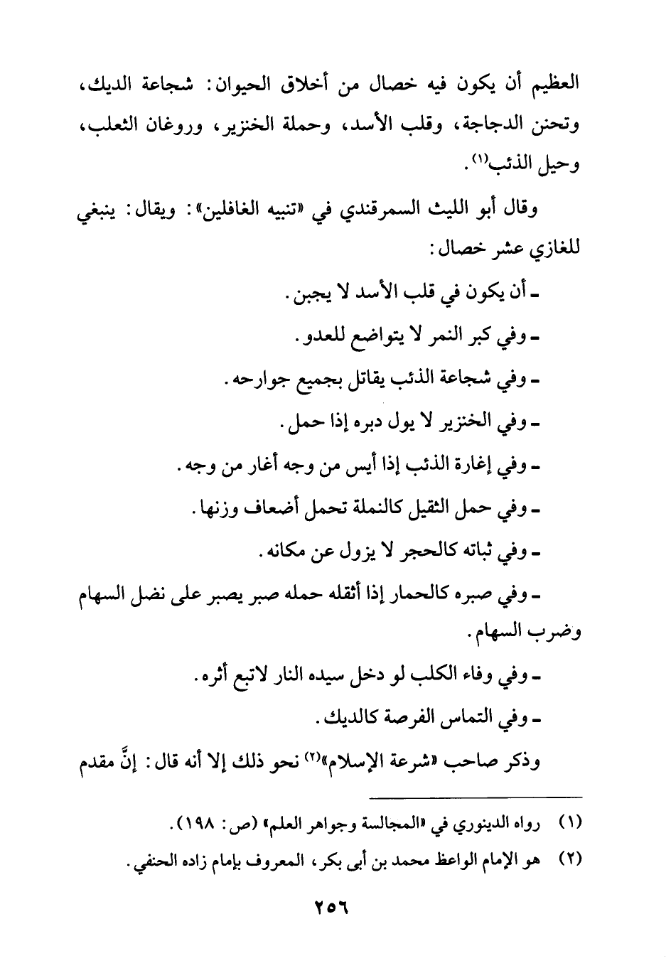 وقال أبو الليث السمرقندي في "تنبيه الغافلين": ويقال: ينبغي للغازي عشر خصال:
