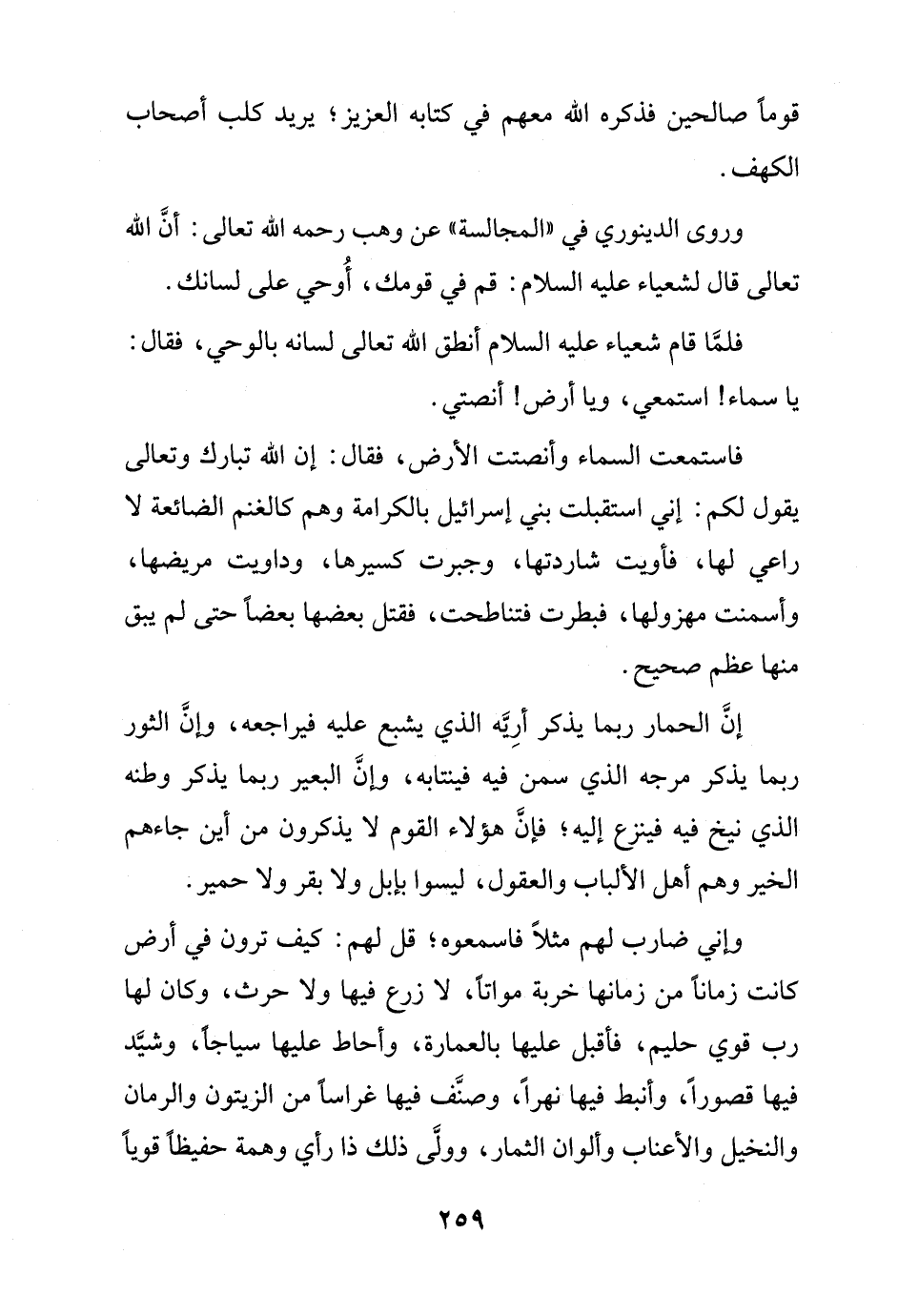 وروى الدينوري في "المجالسة" عن وهب رحمه الله تعالى: أنَّ الله تعالى قال لشعياء عليه السلام: قم في قومك، أُوحي على لسانك.