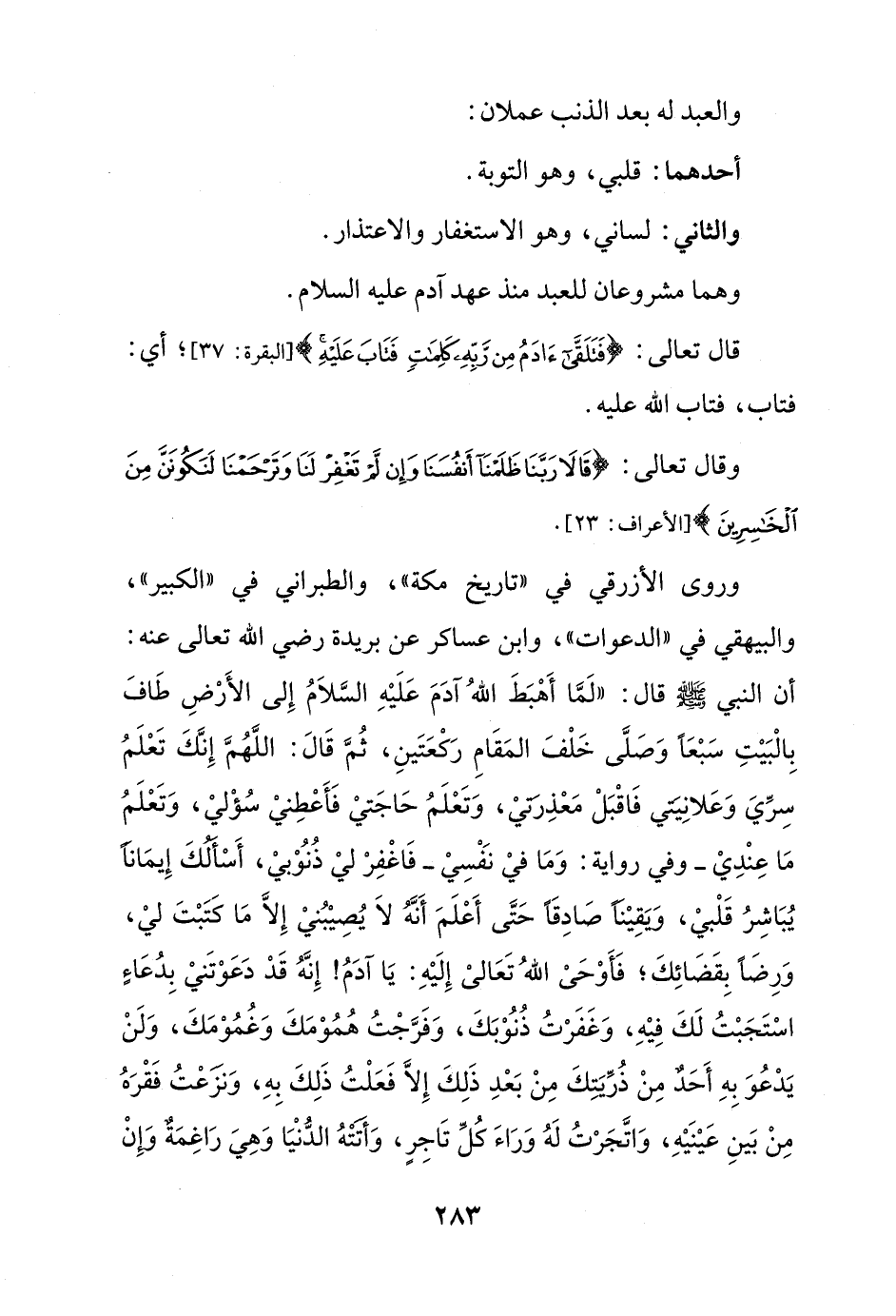 قال تعالى: {فَتَلَقَّى آدَمُ مِنْ رَبِّهِ كَلِمَاتٍ فَتَابَ عَلَيْهِ} [البقرة: 37]