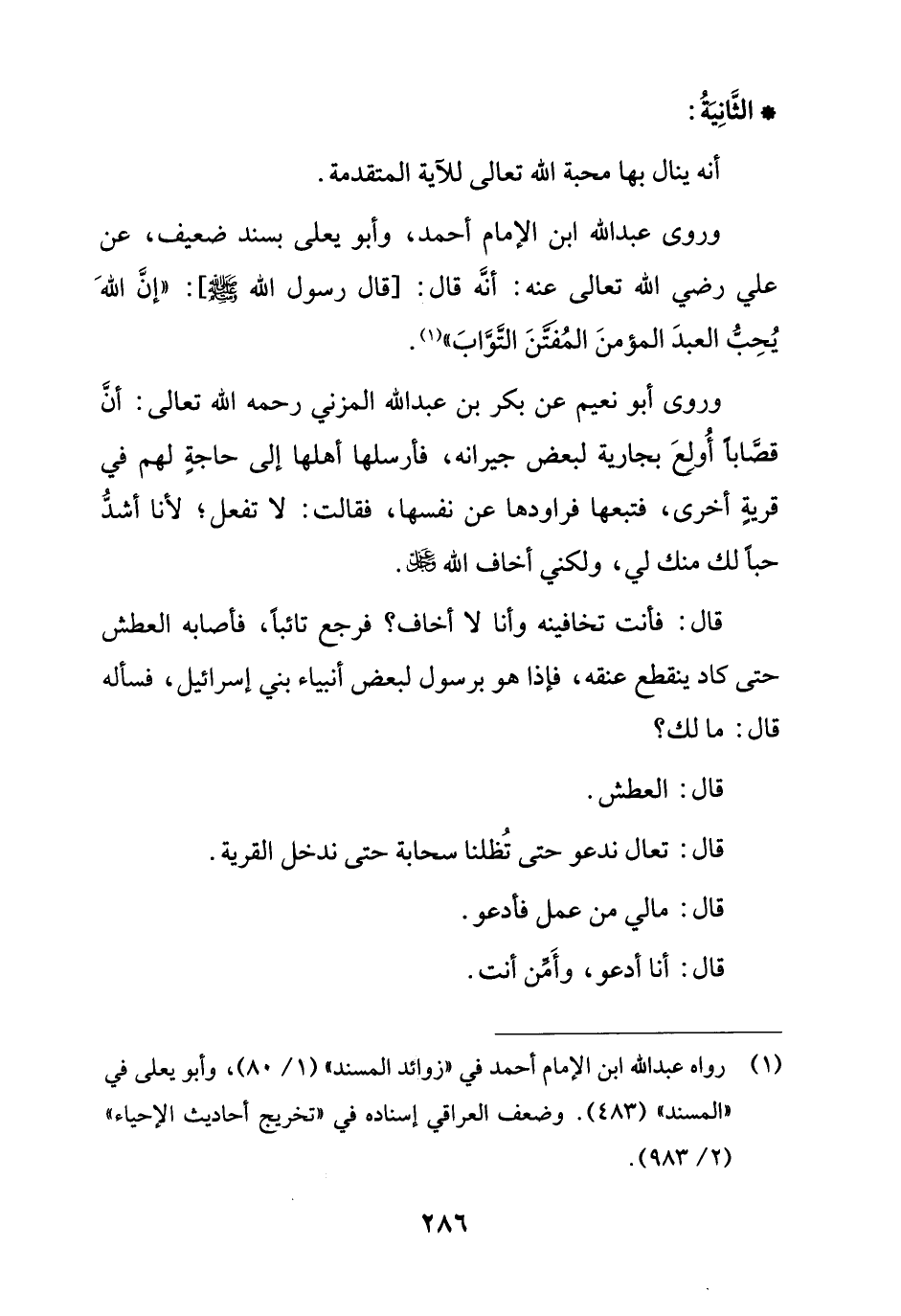 وروى عبد الله ابن الإمام أحمد، وأبو يعلى بسند ضعيف، عن علي رضي الله تعالى عنه: أنَّه قال: [قال رسول الله - صلى الله عليه وسلم -]: "إنَ اللهَ يُحِبُّ العبدَ المؤمنَ المُفتَّنَ التَّوَّاب" (¬1).