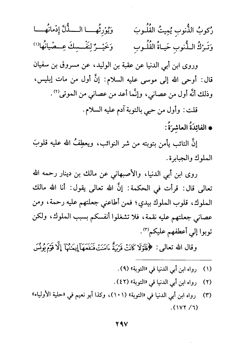 (¬3) رواه ابن أبي الدنيا في "التوبة" (101)، وكذا أبو نعيم في "حلية الأولياء" (6/ 172).