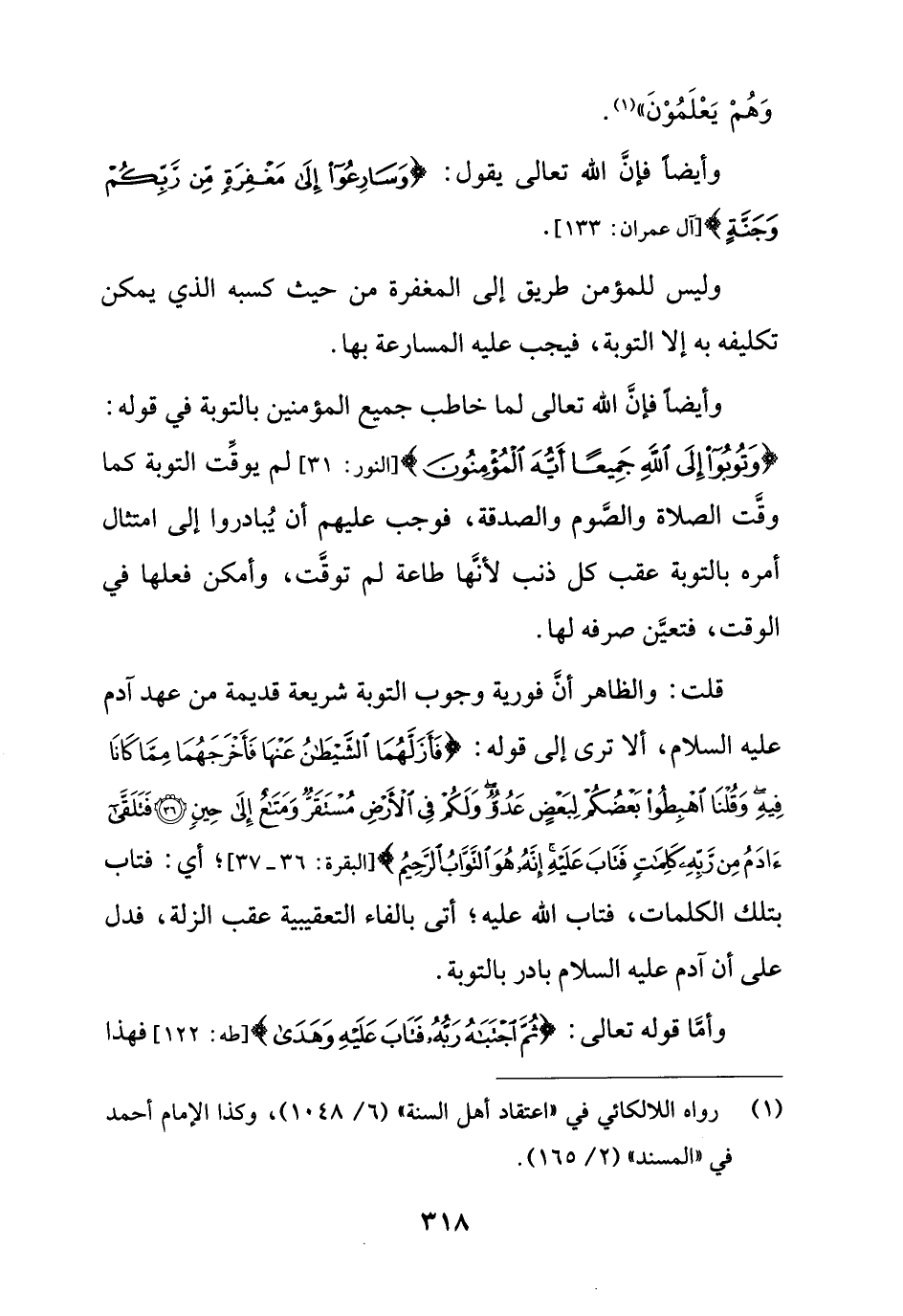 قلت: والظاهر أنَّ فورية وجوب التوبة شريعة قديمة من عهد آدم عليه السلام، ألا ترى إلى قوله: {فَأَزَلَّهُمَا الشَّيْطَانُ عَنْهَا فَأَخْرَجَهُمَا مِمَّا كَانَا فِيهِ وَقُلْنَا اهْبِطُوا بَعْضُكُمْ لِبَعْضٍ عَدُوٌّ وَلَكُمْ فِي الْأَرْضِ مُسْتَقَرٌّ وَمَتَاعٌ إِلَى حِينٍ (36) فَتَلَقَّى آدَمُ مِنْ رَبِّهِ كَلِمَاتٍ فَتَابَ عَلَيْهِ إِنَّهُ هُوَ التَّوَّابُ الرَّحِيمُ} [البقرة: 36، 37]؛ أي: فتاب بتلك الكلمات، فتاب الله عليه؟ أتى بالفاء التعقيبية عقب الزلة، فدل على أن آدم عليه السلام بادر بالتوبة.