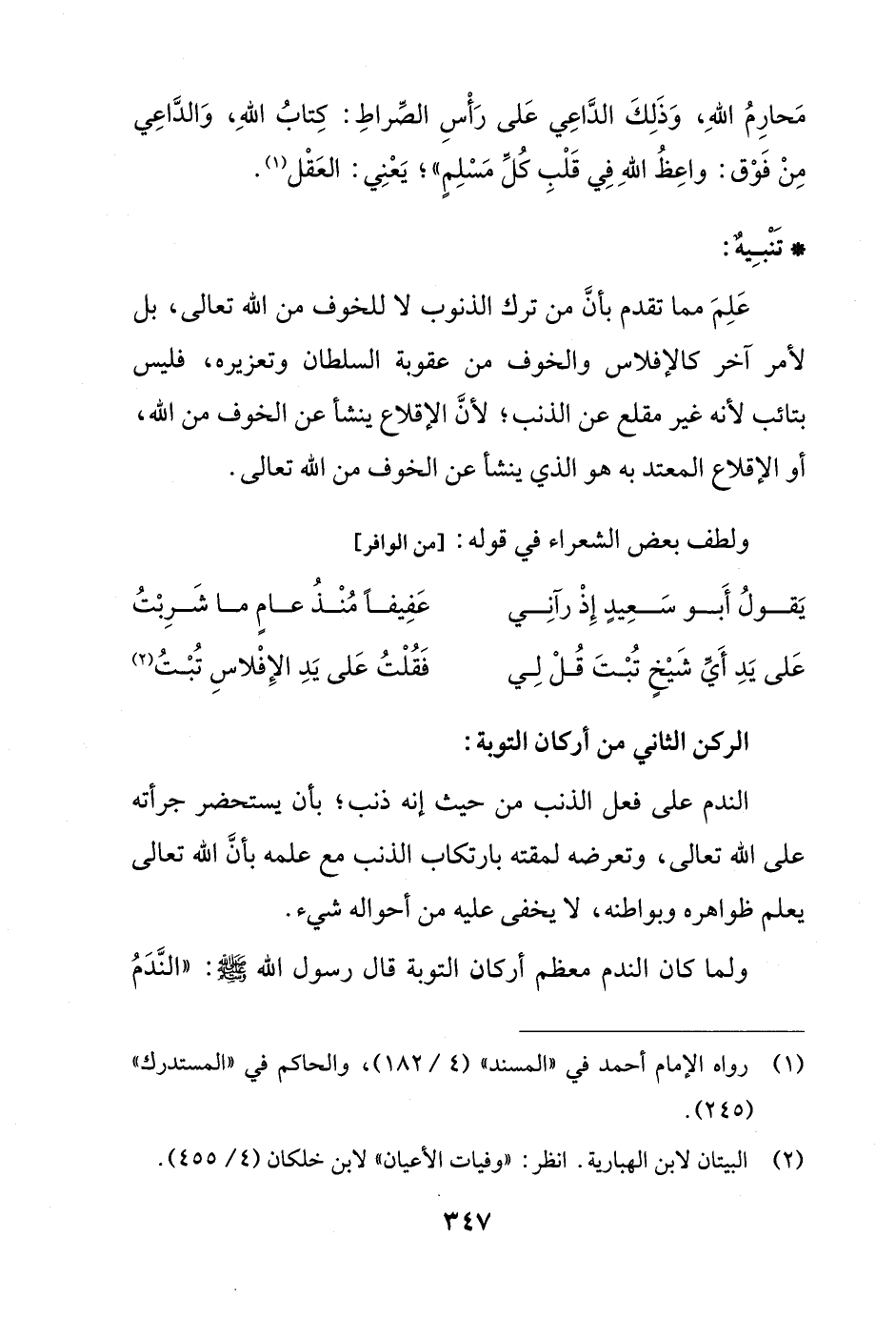 الركن الثاني من أركان التوبة: