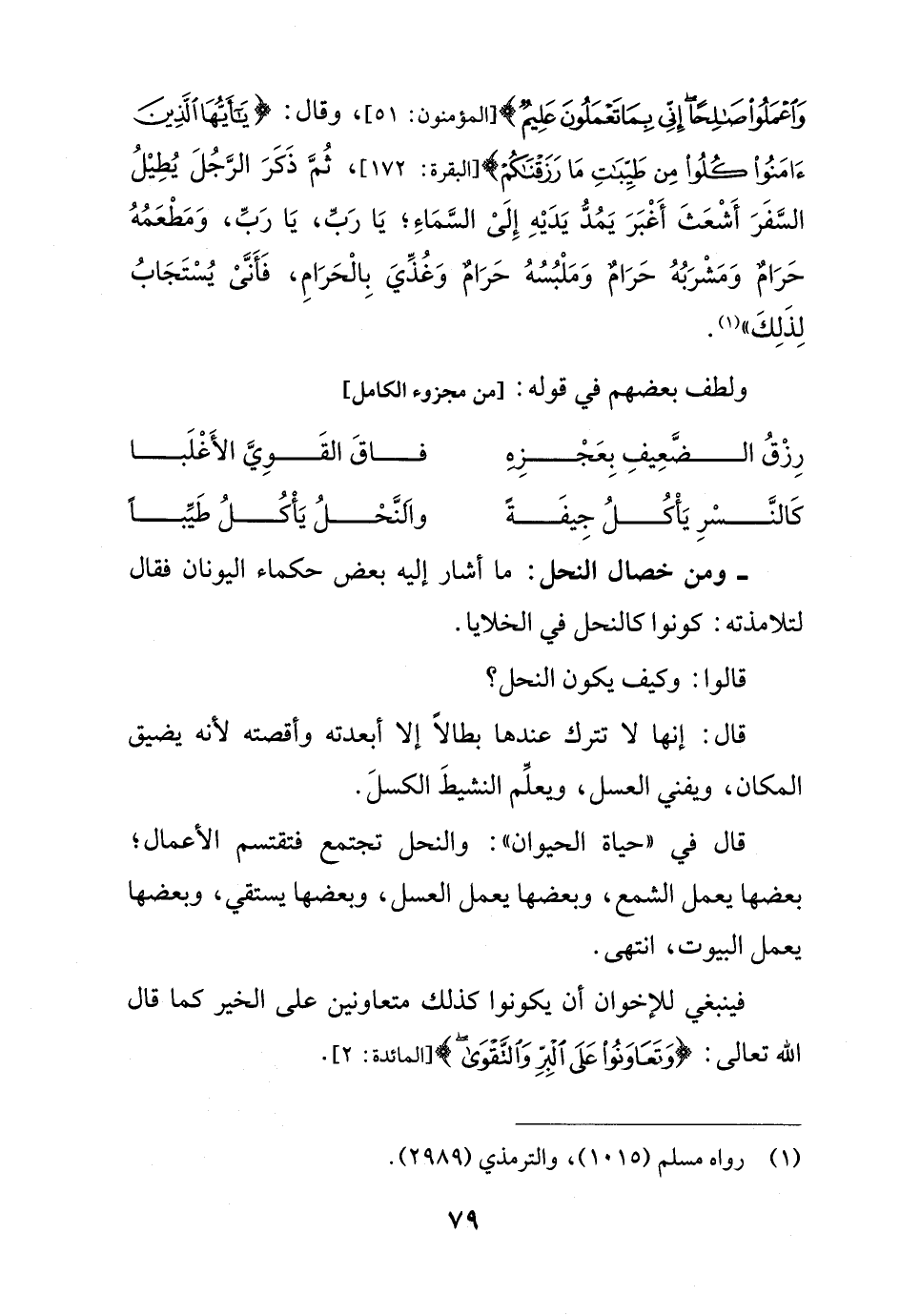 - ومن خصال النحل: ما أشار إليه بعض حكماء اليونان فقال لتلامذته: كونوا كالنحل في الخلايا.