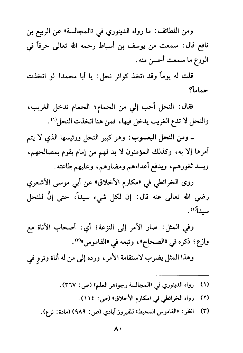 روى الخرائطي في "مكارم الأخلاق" عن أبي موسى الأشعري رضي الله تعالى عنه قال: إن لكل شيء سيداً، حتى إنَّ للنحل سيداً (¬2).