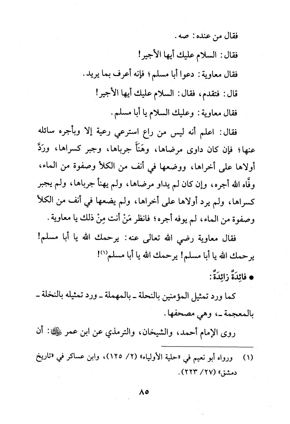 فقال معاوية: وعليك السلام يا أبا مسلم.