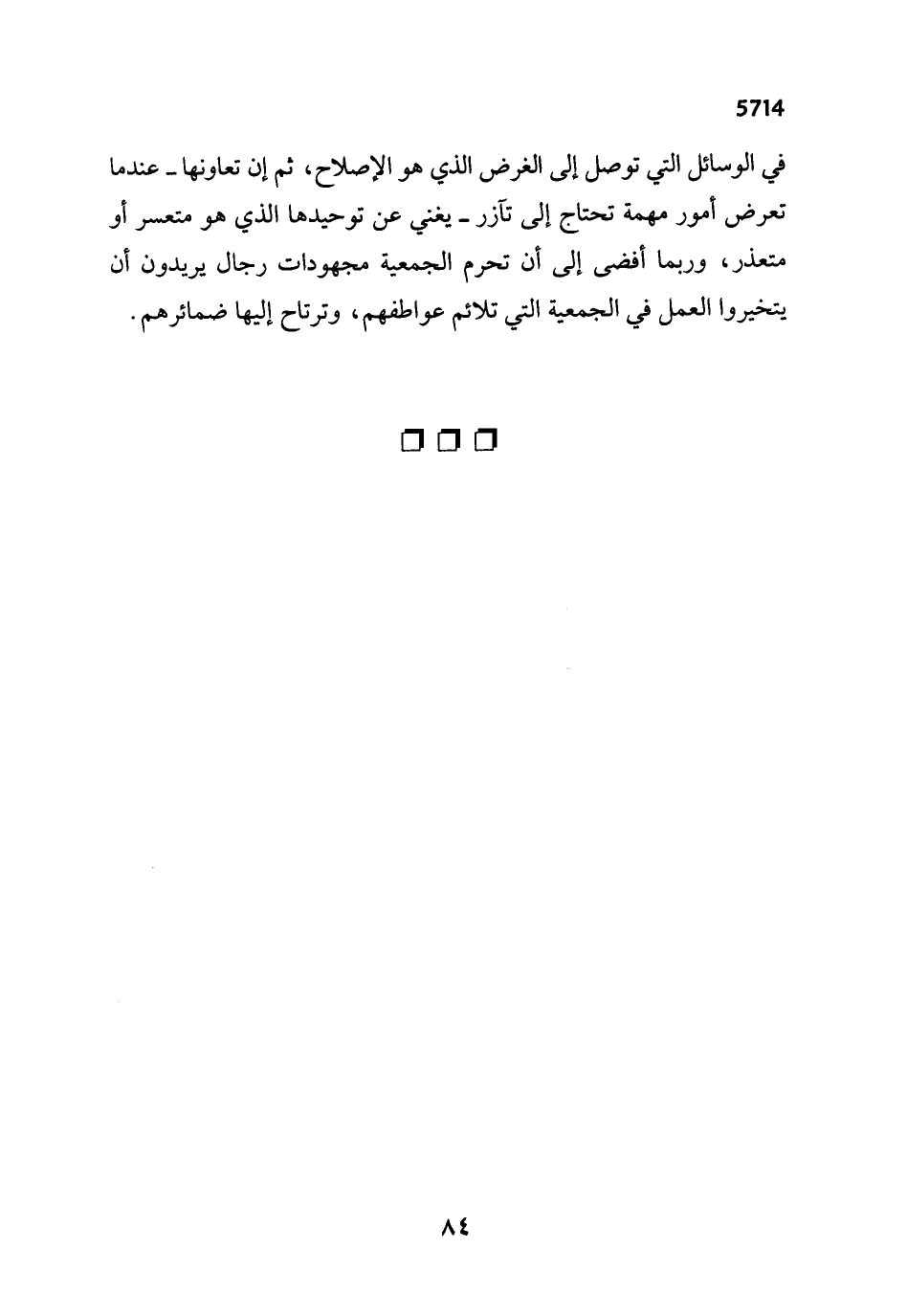 في الوسائل التي توصل إلى الغرض الذي هو الإصلاح، ثم إن تعاونها -عندما تعرض أمور مهمة تحتاج إلى تآزر- يغني عن توحيدها الذي هو متعسر أو متعذر، وربما أفضى إلى أن تحرم الجمعية مجهودات رجال يريدون أن يتخيروا العمل في الجمعية التي تلائم عواطفهم، وترتاح إليها ضمائرهم.