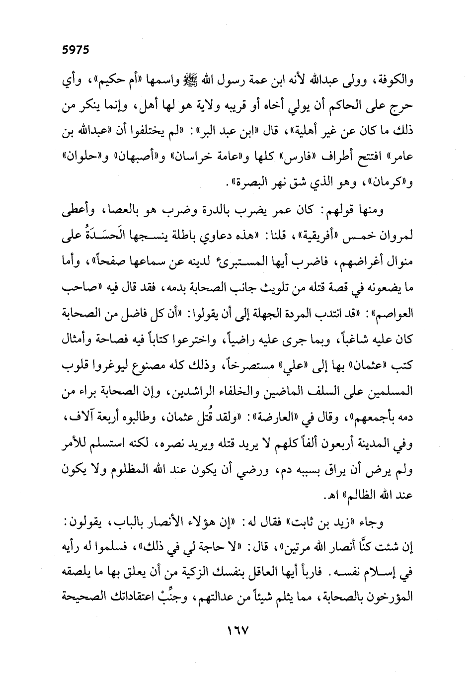 وجاء "زيد بن ثابت" فقال له: "إن هؤلاء الأنصار بالباب، يقولون: إن شئت كنَّا أنصار الله مرتين"، قال: "لا حاجة لي في ذلك"، فسلموا له رأيه في إسلام نفسه. فاربأ أيها العاقل بنفسك الزكية من أن يعلق بها ما يلصقه المؤرخون بالصحابة، مما يثلم شيئاً من عدالتهم، وجنِّبْ اعتقاداتك الصحيحة
