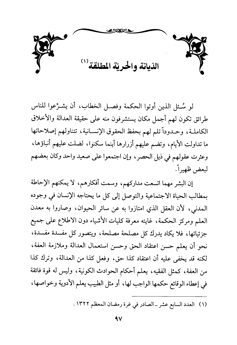 الدّيانة والحريّة المطلقة (¬1)