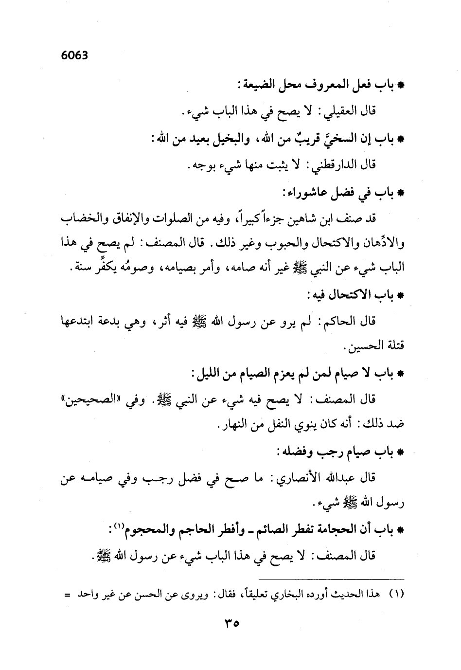 قد صنف ابن شاهين جزءاً كبيراً، وفيه من الصلوات والإنفاق والخضاب والادِّهان والاكتحال والحبوب وغير ذلك. قال المصنف: لم يصح في هذا الباب شيء عن النبي - صلى الله عليه وسلم - غير أنه صامه، وأمر بصيامه، وصومُه يكفِّر سنة.