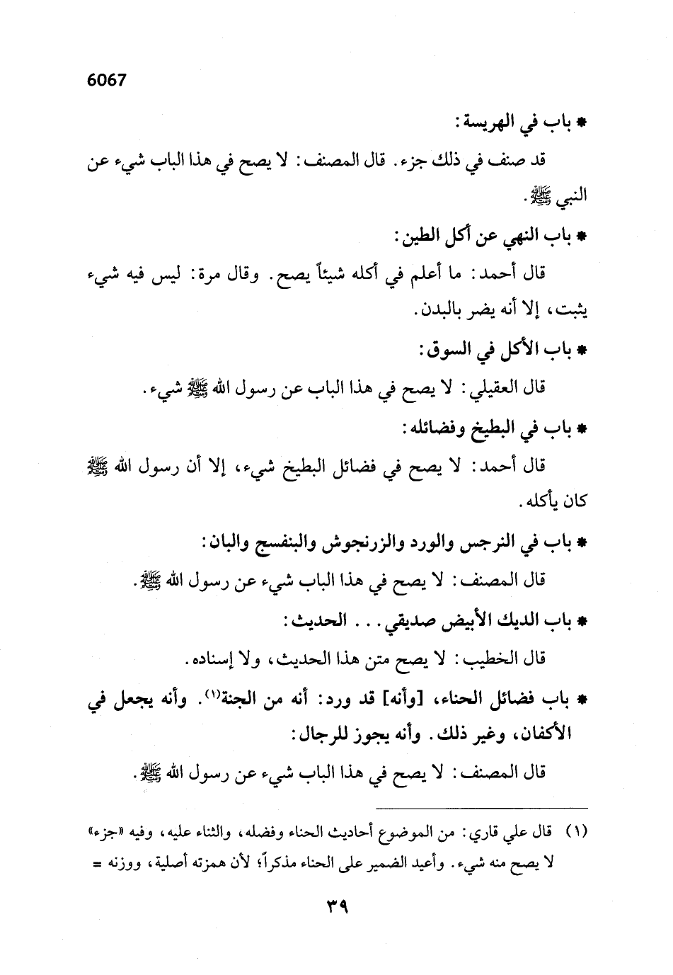 (¬1) قال علي قاري: من الموضوع أحاديث الحناء وفضله، والثناء عليه، وفيه "جزء" لا يصح منه شيء. وأعيد الضمير على الحناء مذكراً؛ لأن همزته أصلية، ووزنه =