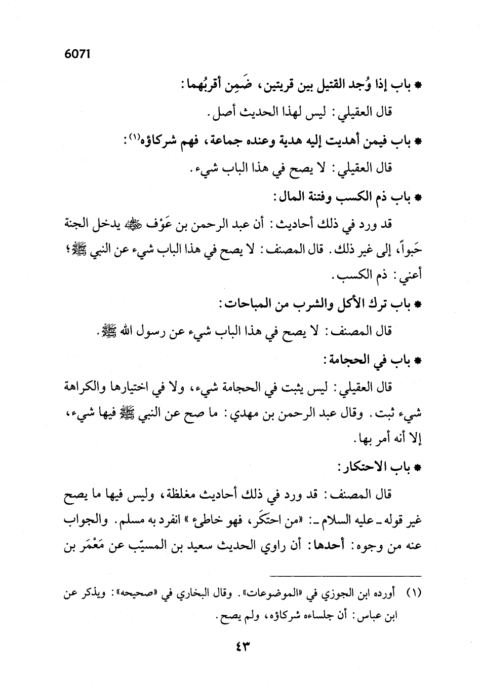 قد ورد في ذلك أحاديث: أن عبد الرحمن بن عَوْف - رضي الله عنه - يدخل الجنة حَبواً، إلى غير ذلك. قال المصنف: لا يصح في هذا الباب شيء عن النبي - صلى الله عليه وسلم -. أعني: ذم الكسب.