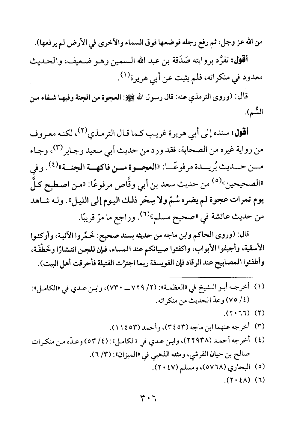 أقول: سنده إلى أبي هريرة غريب كما قال الترمذي (¬٢)، لكنه معروف من رواية غيره من الصحابة، فقد ورد من حديث أبي سعيد وجابر (¬٣)، وجاء من حديث بُريدة مرفوعًا: «العجوة من فاكهة الجنة» (¬٤). وفي «الصحيحين» (¬٥) من حديث سعد بن أبي وقَّاص مرفوعًا: «من اصطبح كلَّ يوم تمرات عجوة لم يضره سُمّ ولا سِحْر ذلك اليوم إلى الليل». وله شاهد من حديث عائشة في «صحيح مسلم» (¬٦). وراجع ما مرّ قريبًا.