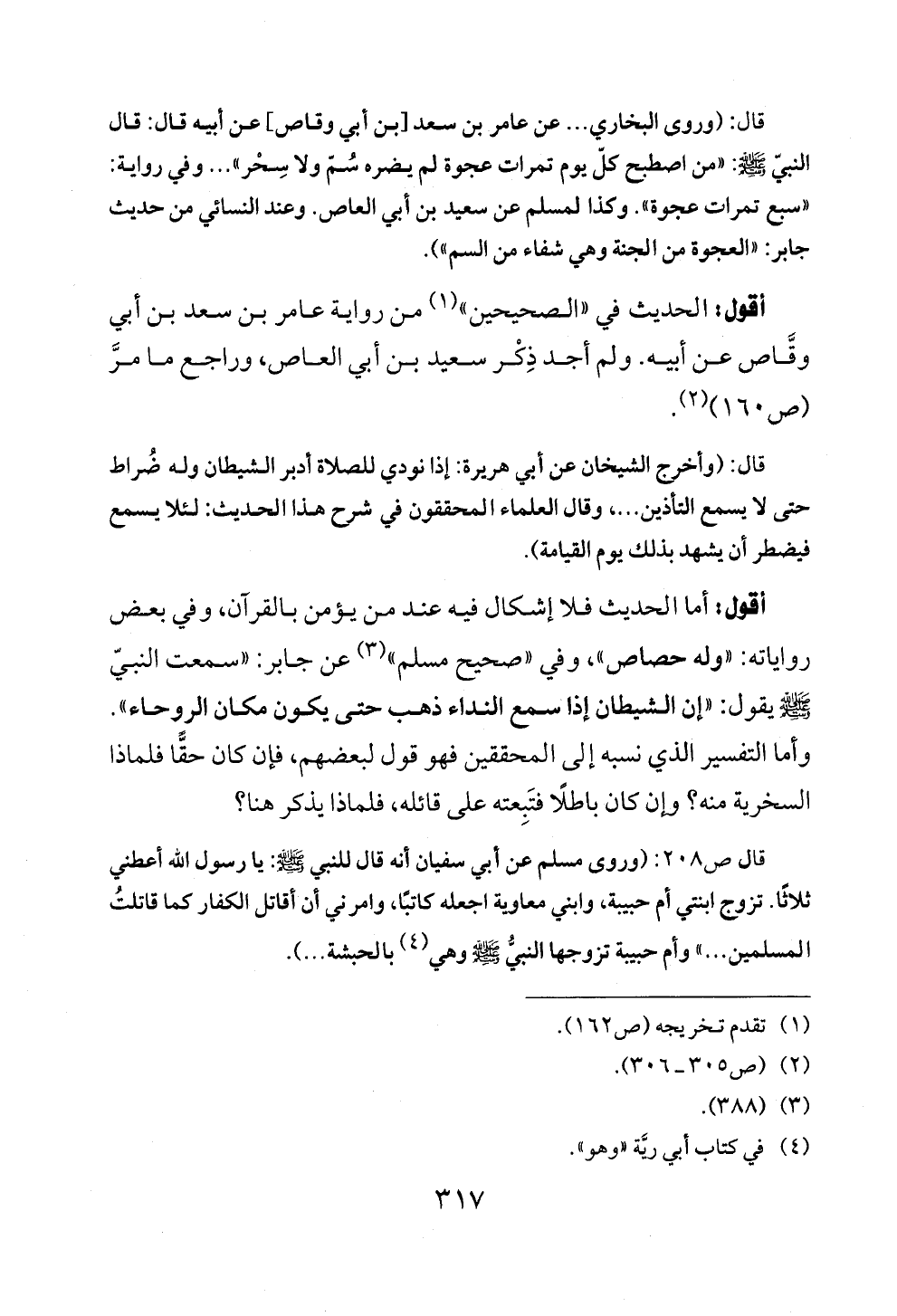 قال ص ٢٠٨: (وروى مسلم عن أبي سفيان أنه قال للنبي - صلى الله عليه وسلم -: يا رسول الله أعطني ثلاثًا. تزوج ابنتي أم حبيبة، وابني معاوية اجعله كاتبًا، وامرني أن أقاتل الكفار كما قاتلتُ المسلمين ... » وأم حبيبة تزوجها النبيُّ - صلى الله عليه وسلم - وهي (¬٤) بالحبشة ... ).