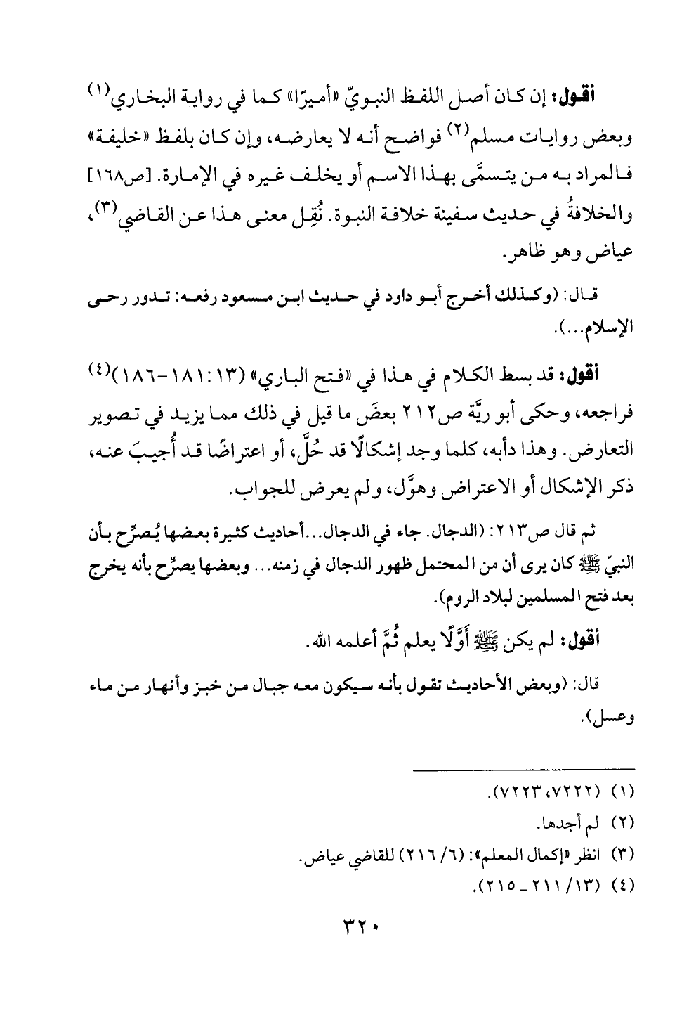 ثم قال ص ٢١٣: (الدجال. جاء في الدجال ... أحاديث كثيرة بعضها يُصرِّح بأن النبيّ - صلى الله عليه وسلم - كان يرى أن من المحتمل ظهور الدجال في زمنه ... وبعضها يصرِّح بأنه يخرج بعد فتح المسلمين لبلاد الروم).
