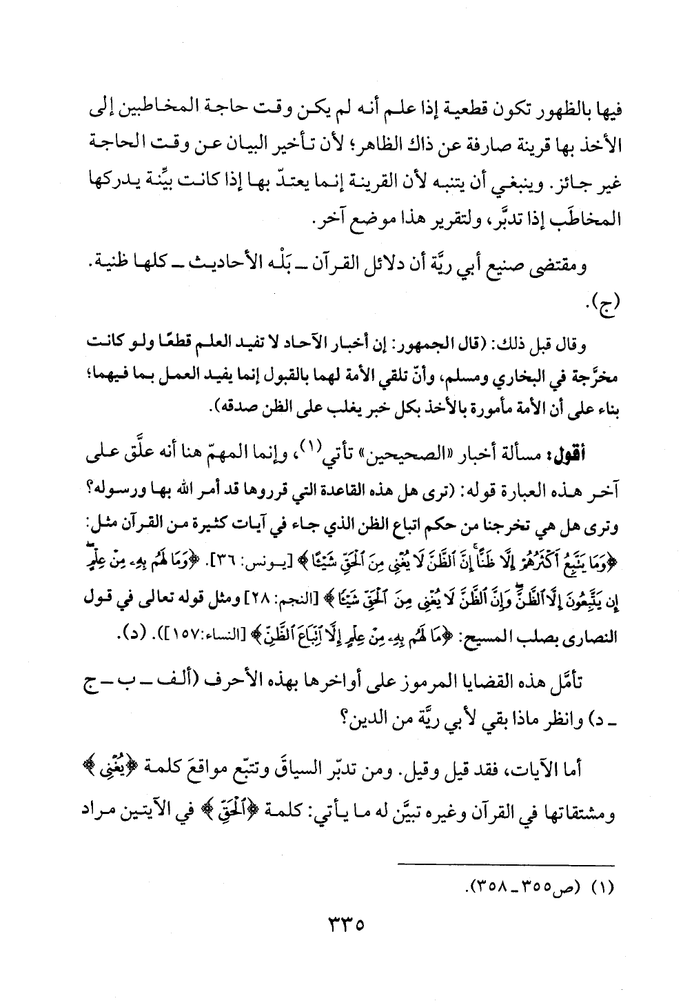 ومقتضى صنيع أبي ريَّة أن دلائل القرآن ــ بَلْه الأحاديث ــ كلها ظنية. (ج).