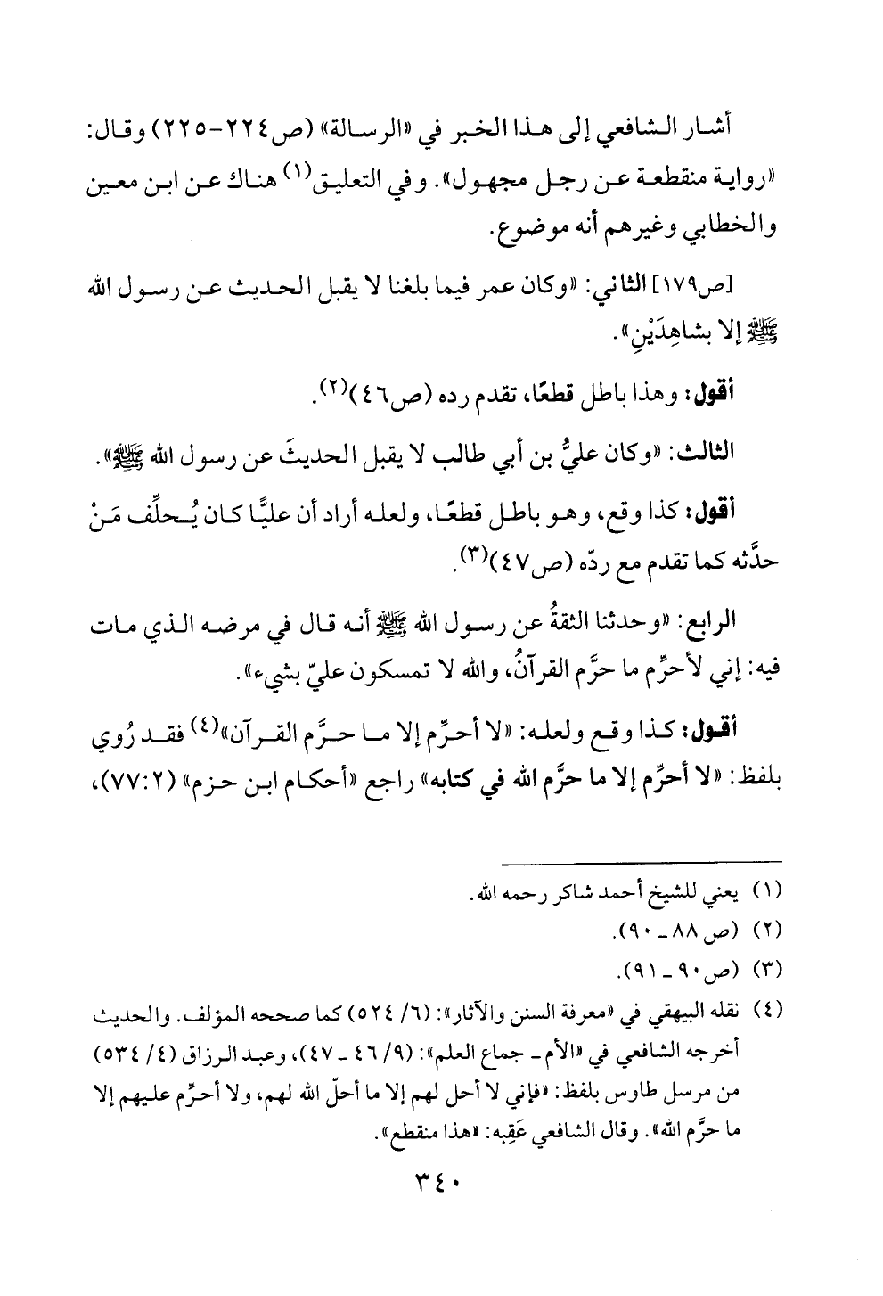 أقول: كذا وقع ولعله: «لا أحرِّم إلا ما حرَّم القرآن» (¬٤) فقد رُوي بلفظ: «لا أحرِّم إلا ما حرَّم الله في كتابه» راجع «أحكام ابن حزم» (٧٧: ٢)،