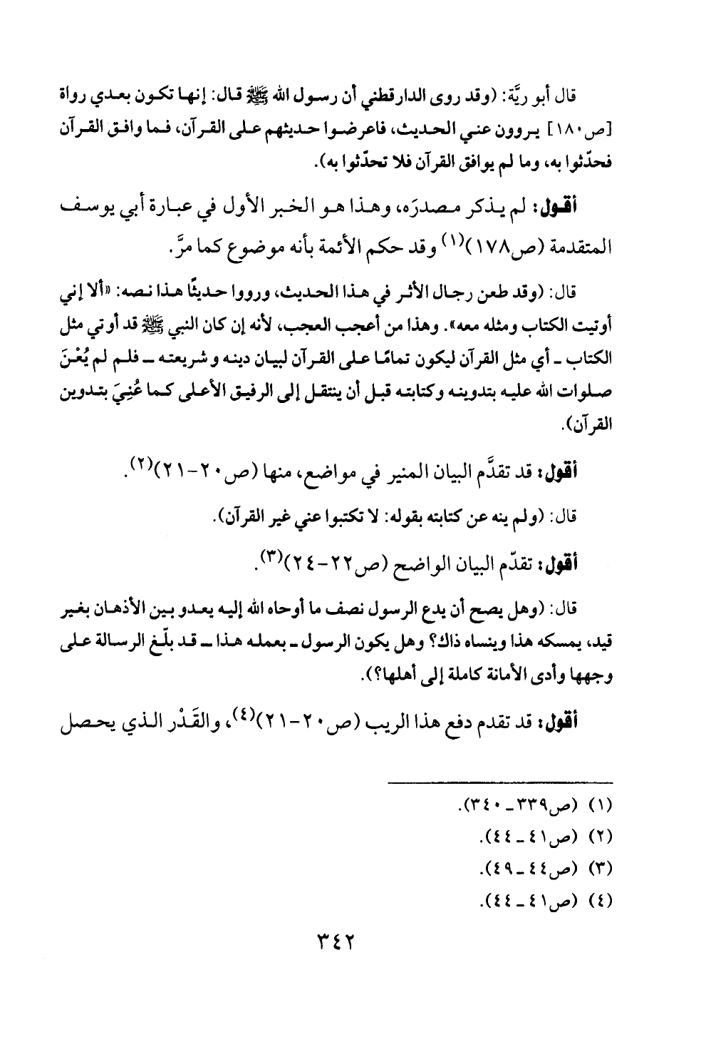 قال أبو ريَّة: (وقد روى الدارقطني أن رسول الله - صلى الله عليه وسلم - قال: إنها تكون بعدي رواة [ص ١٨٠] يروون عني الحديث، فاعرضوا حديثهم على القرآن، فما وافق القرآن فحدّثوا به، وما لم يوافق القرآن فلا تحدّثوا به).