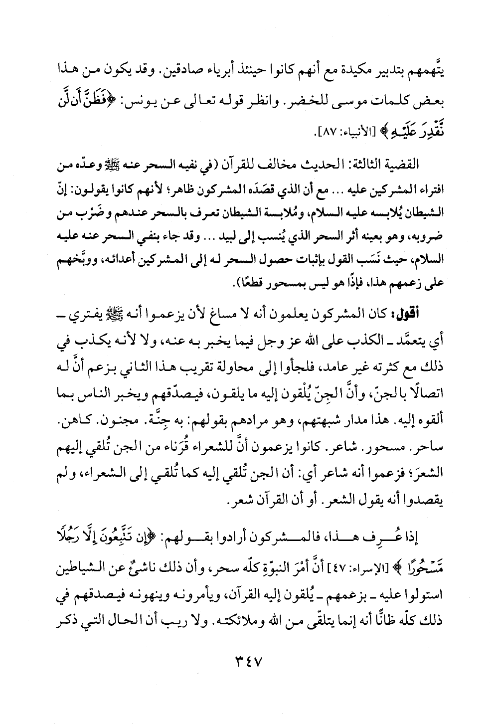 إذا عُرِف هذا، فالمشركون أرادوا بقولهم: {إِنْ تَتَّبِعُونَ إِلَّا رَجُلًا مَسْحُورًا} [الإسراء: ٤٧] أنَّ أمْرَ النبوّةِ كلّه سحر، وأن ذلك ناشئٌ عن الشياطين استولوا عليه ــ بزعمهم ــ يُلقون إليه القرآن، ويأمرونه وينهونه فيصدقهم في ذلك كلّه ظانًّا أنه إنما يتلقّى من الله وملائكته. ولا ريب أن الحال التي ذكر