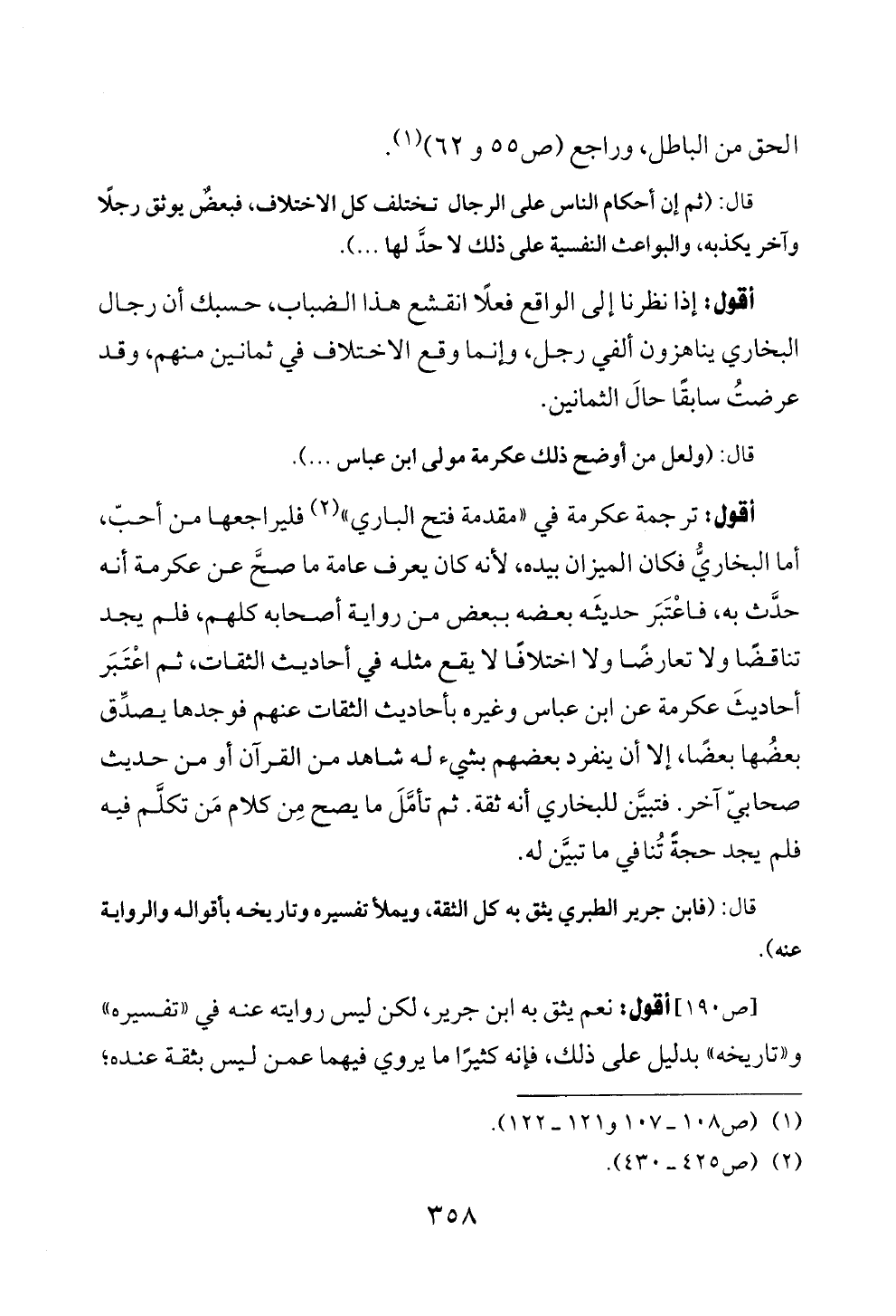 [ص ١٩٠] أقول: نعم يثق به ابن جرير، لكن ليس روايته عنه في «تفسيره» و «تاريخه» بدليل على ذلك، فإنه كثيرًا ما يروي فيهما عمن ليس بثقة عنده؛